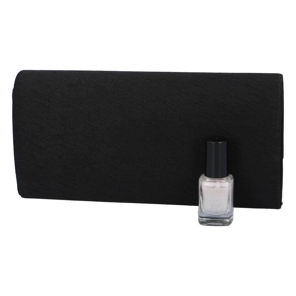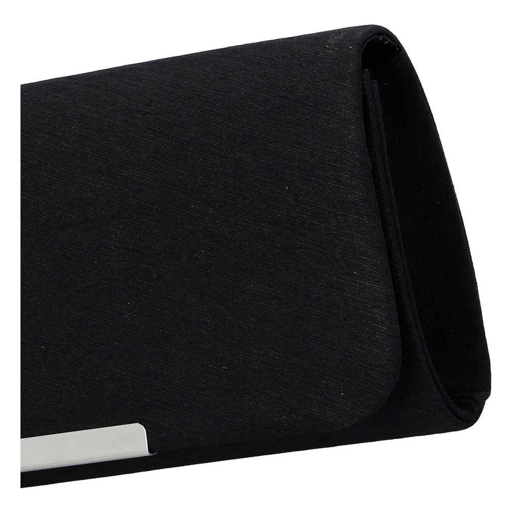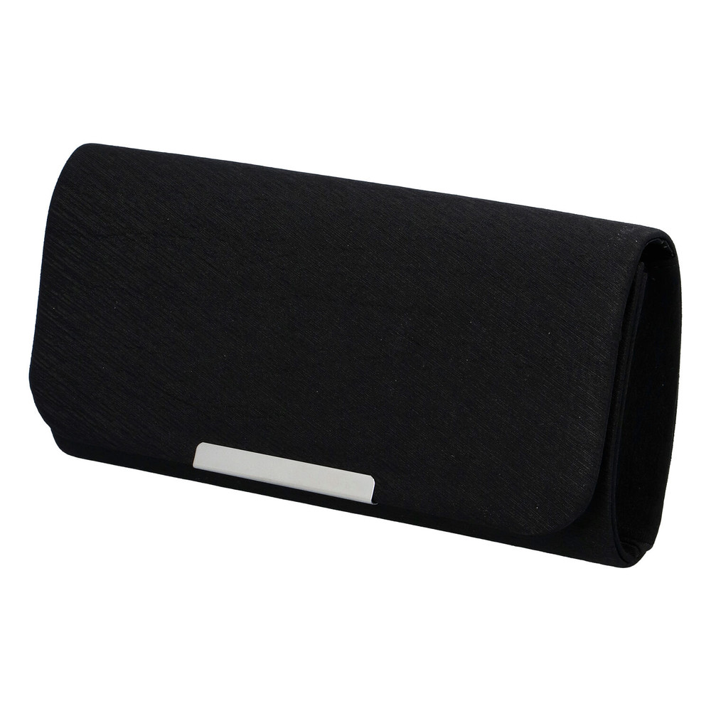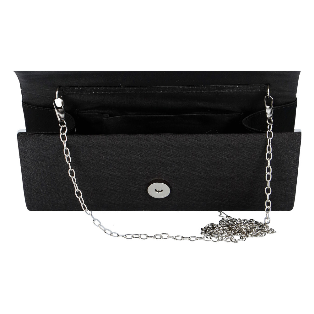 S touto luxusnou, saténovou, čiernou listovou kabelkou značky Michelle Moon si spoločenský zážitok naozaj užijete! Na plese, v divadle či na romantickej večeri sa žiadna žena bez plesovej kabelky nezaobíde. Táto krásny menší model zvýrazní Váš spoločenský outfit a presvedčí okolie o Vašom vycibrenom vkuse a elegancii. Objednajte ešte dnes a vyskúšajte, vrátiť ju môžete až do 30 dní. Je pevná, má veľmi originálne, vkusné jemné vzorovanie a prostrednú časť jej klopy lemuje rovná kovová spona. Otvára sa magnetickým nitom. Príjemne sa nosí v ruke, ale nosiť ju môžete aj cez plece. Disponuje odnímateľným retiazkovým popruhom. Vnútri nájdete menšiu kapsičku, napríklad na rúž. Vyhovovať Vám bude jej podlhovastý a zaoblený tvar. Luxus na prvý pohľad!
