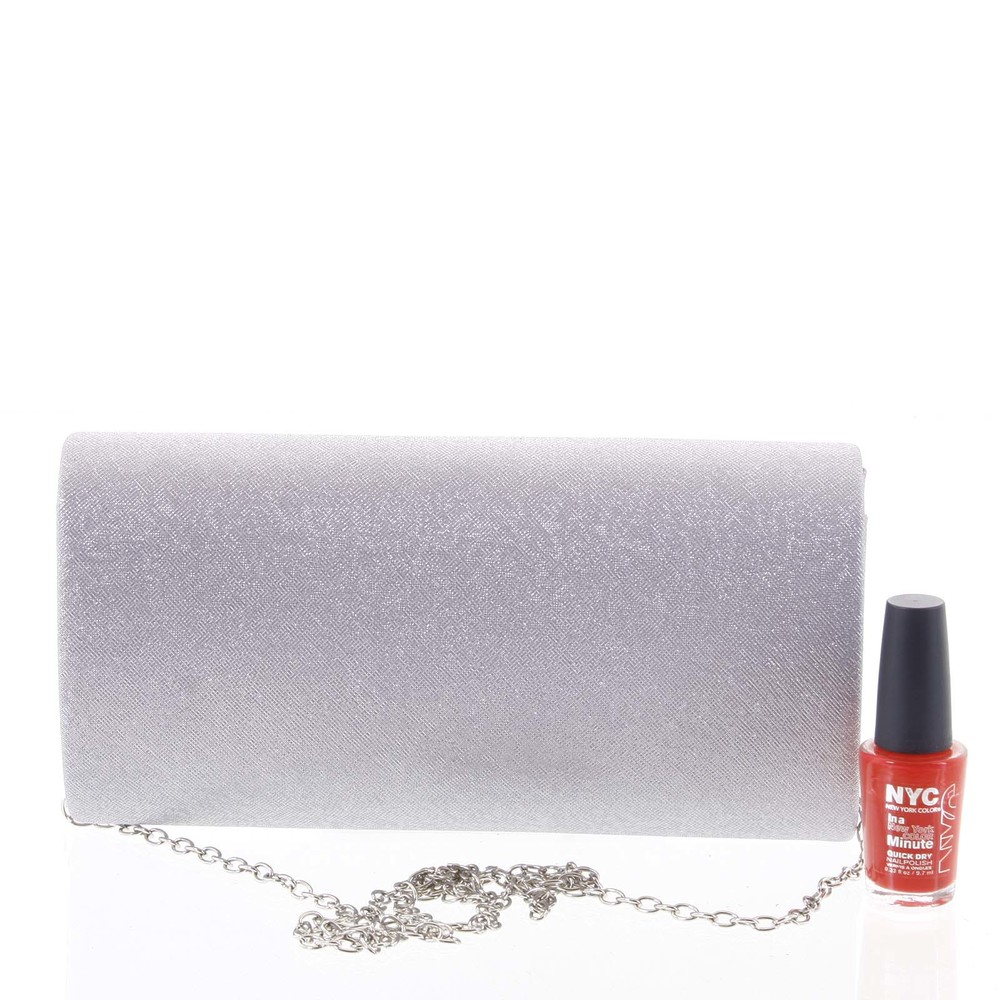 Objednajte ešte dnes a vyskúšajte, tovar môžete vrátiť až za 30 dní! Módná, strieborná listová kabelka Michelle Moon vyladí Váš outfit na večernú zábavu, na ples, do divadla alebo aj do mesta. Spĺňa všetky parametre elegancie i moderného štýlu. Listová kabelka so vzorom saffiano má klopu do písmena "V" s kovovou sponou, otvára sa pomocou magnetického cvoku. Celkovo je pevná, oválná s vnútornou voľnou kapsičkou na drobnosti. Nosiť ju môžete v ruke alebo s popruhom cez rameno.