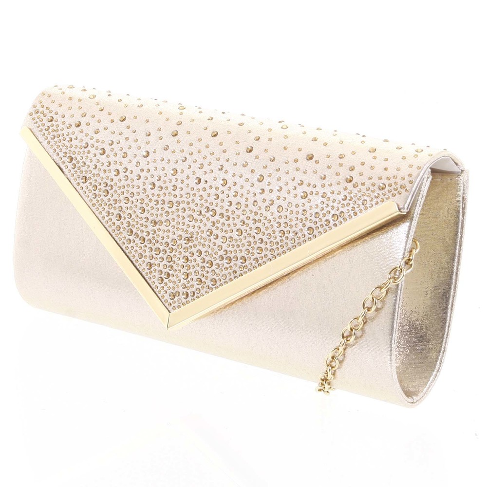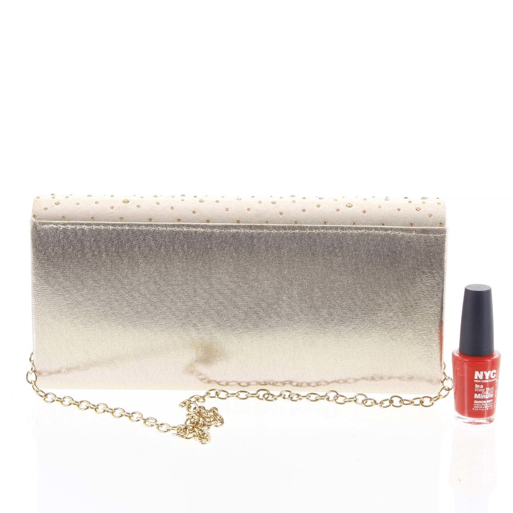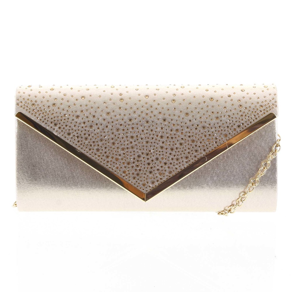 Zháňate listovú kabelku, ktorá sa bude hodiť k Vašim plesovým šatám, kostýmu do divadla alebo outfitu na romantickú večeru? Vyskúšajte tento nový, luxusný, saténový model značky Michelle Moon. Veríme, že skvele doplní Váš "dress code". Oválny dizajn, zlatá farba a kamienky na klope s kovovou sponou. Otvára sa magnetickým nitom, vo vnútri je malé voľné vrecko na drobnosti. Nosiť ju môžete v ruke alebo s popruhom cez plece. Objednaj te ešte dnes a vyskúšajte, vrátiť ju môžete až za 30 dní!