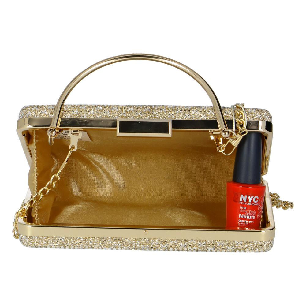 Objednajte ešte dnes a vyskúšajte! Vrátiť ho môžete až za 30 dní! Michelle Moon vás upúta svojim novým modelom. Využijete ho na spoločenské udalosti, plesy a večierky. Elegantná a módna listová kabelka sa otvára v kovovom rámčeku pod sponou na klope. Listová kabelka je príjemná a pohodlná do ruky. Nosiť ju môžete v ruke vďaka kovovému uchu, alebo cez plece, k tomu vám poslúži odnímateľná kovová retiazka. Hlavné vrecko disponuje dostatkom miesta, kraje sú vybavené sťahovacou šnúrkou. Ideálna listová kabelka pre váš večer! ✅