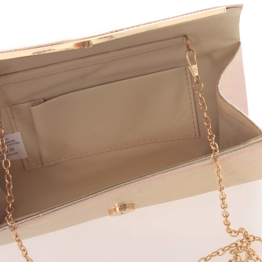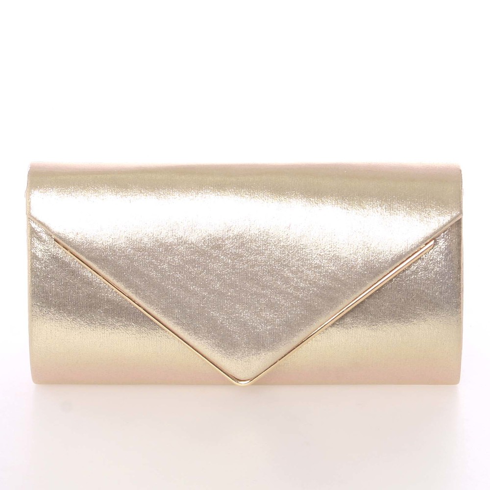 Moderná saténová dámska listová kabelka zlatá s glitterom - Delami D697