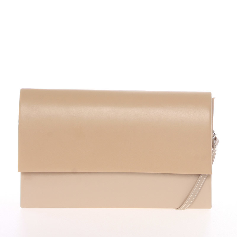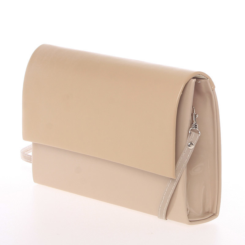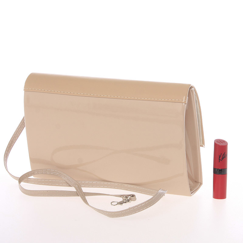 Klasický vzhľad štýlovej camel listovej kabelky Delami v lesklom prevedení s matnou chlopňou určite zaujme nejednu ženu. Listová kabelka je stredne veľká, možno nosiť cez rameno vďaka popruhu, ale padne aj do ruky. Zapína sa pomocou magnetického cvočku. Vnútri sa nachádza malé voľné vrecko.