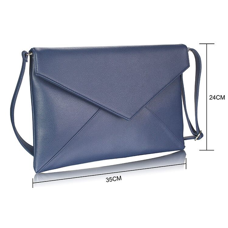 Elegantná väčšia tmavo modrá kabelka-listová kabelka LS Fashion s príklopkou na magnetický cvoček. Vnútri má listová kabelka dve vrecká bez zipsu na mobil a drobnosti a jednu so zipsom. Zozadu jedno vrecko na zips. Súčasťou je nastaviteľný odnímateľný popruh. Listovú kabelku možno nosiť v ruke alebo s popruhom cez rameno. Materiál koženka.
