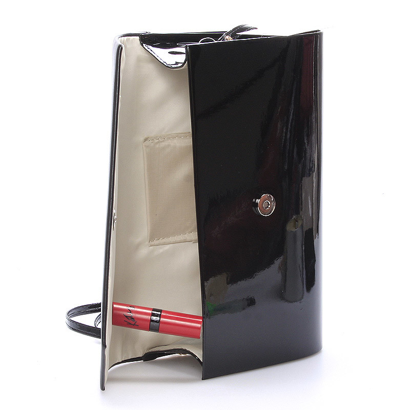 Štýlový vzhľad čiernej listovej kabelky Delami v lesklom prevedení s matnou nerovnou chlopňou určite zaujme nejednu ženu a ak hľadáte priestor, je Charlien to pravé! Listová kabelka je veľká, možno nosiť cez rameno vďaka popruhu, ale padne aj do ruky. Zapína sa pomocou magnetického cvočku. Vnútri sa nachádza malé voľné vrecko.