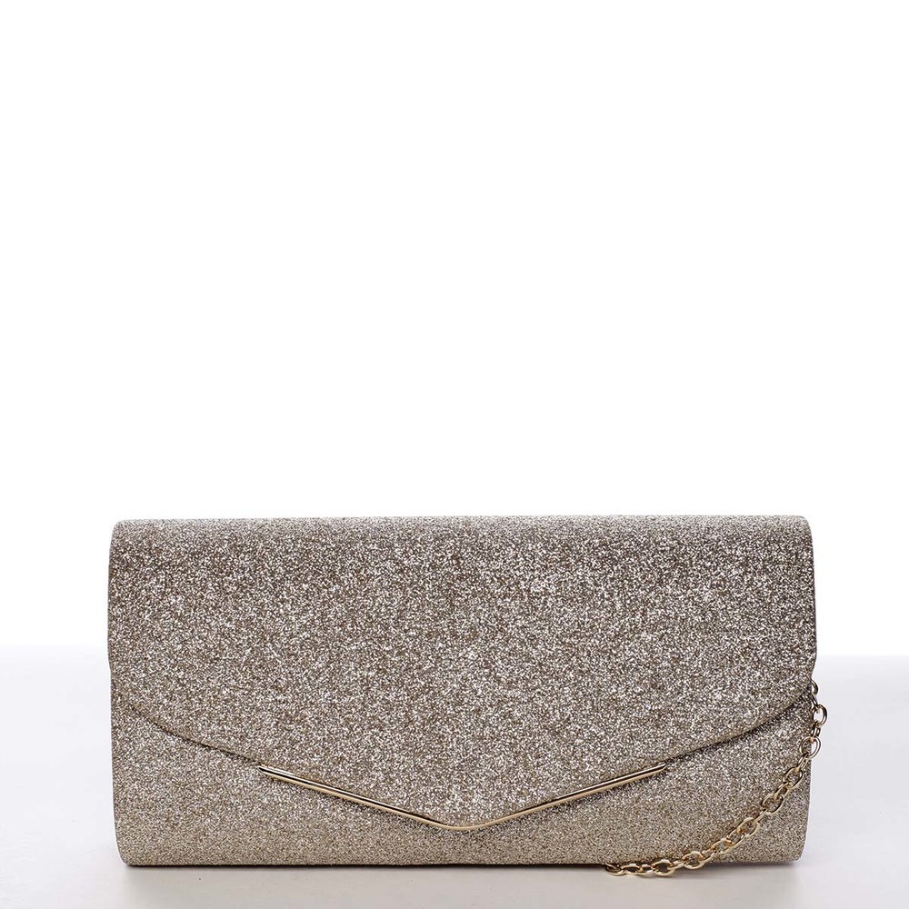 Nádherne trblietavá zlatá listová kabelka Michelle Moon, ktorá sa adekvátne zladí s Vaším outfitom na večernú zábavu, na ples, bál, do unikátnej spoločnosti, do divadla alebo aj len tak do mesta a do kina. Spĺňa všetky predpoklady listovej kabelky k spoločenským udalostiam. Glitry sú po celej listovej kabelke. Otvára sa klopou na magnetický cvoček, v detaile je kovová spona. Je akurátnej veľkosti s vnútornou voľnou kapsičkou. Objednajte ešte dnes a vyskúšajte, tovar môžete vrátiť až do 30 dní!