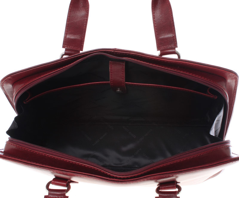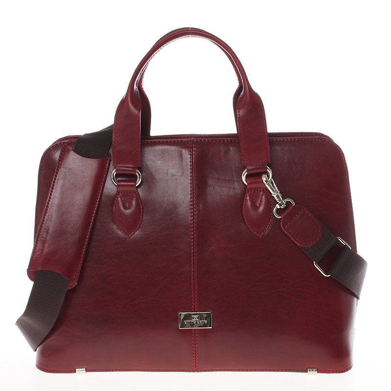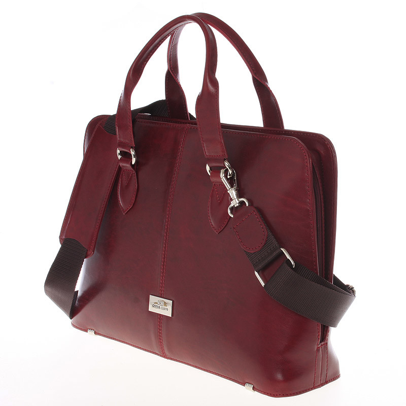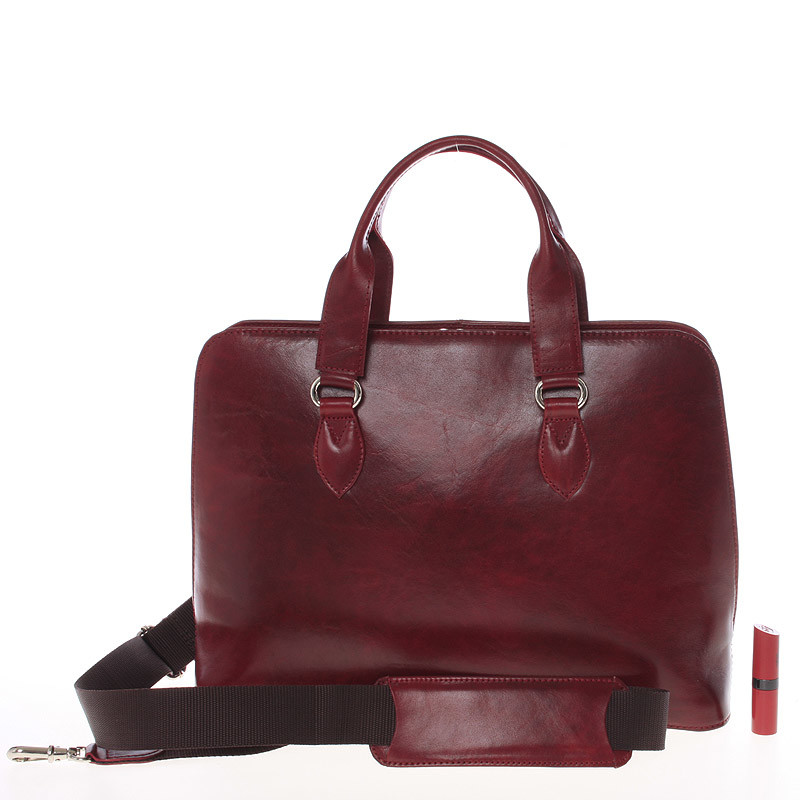 Pevná luxusná dámska vínová kožená aktovka - Annie Claire Boom