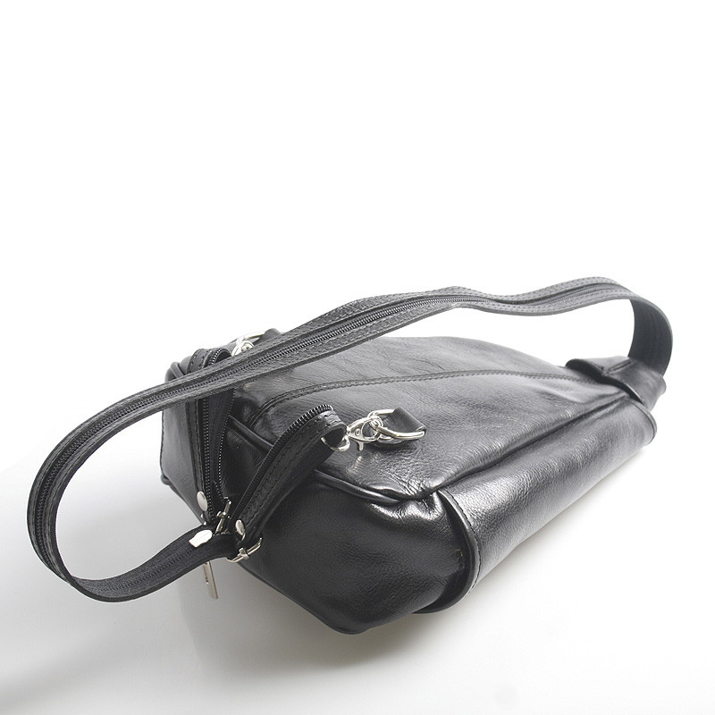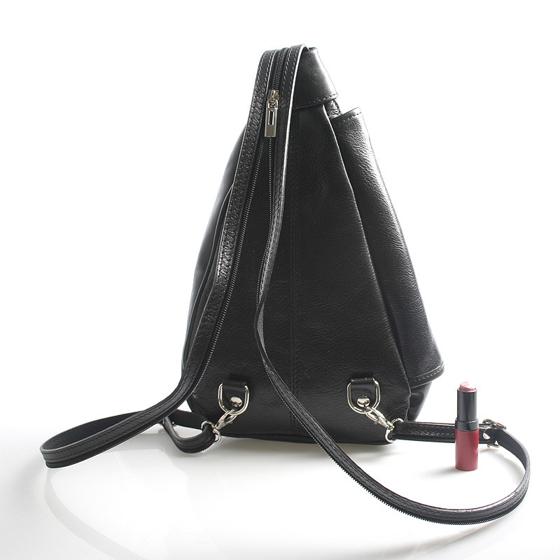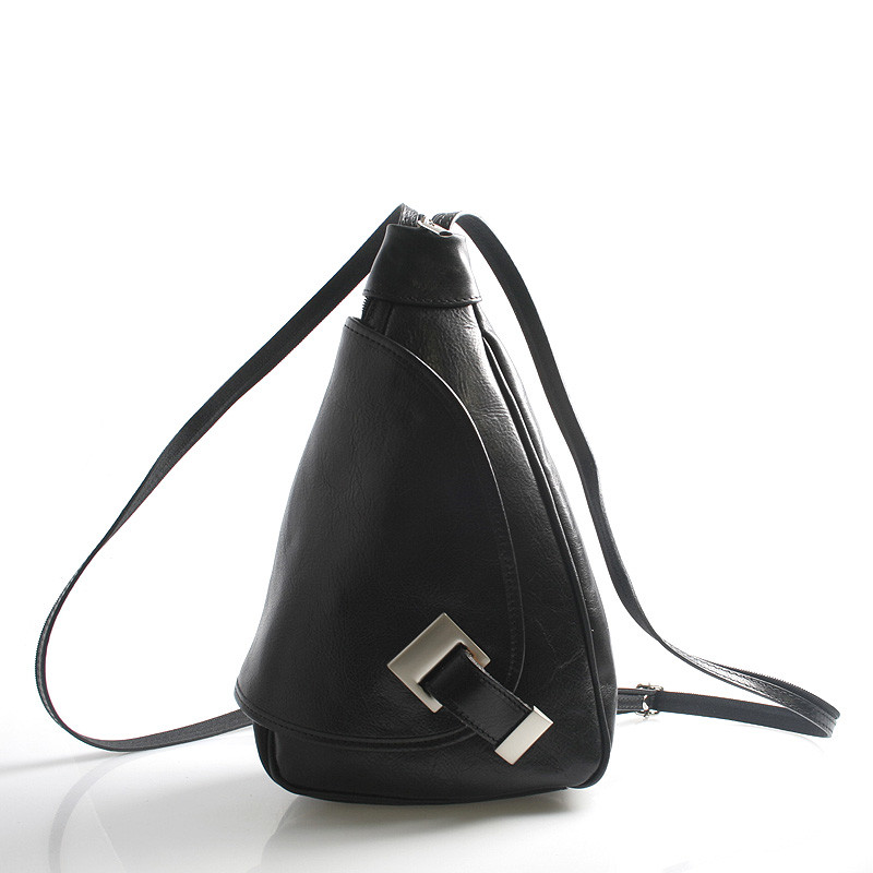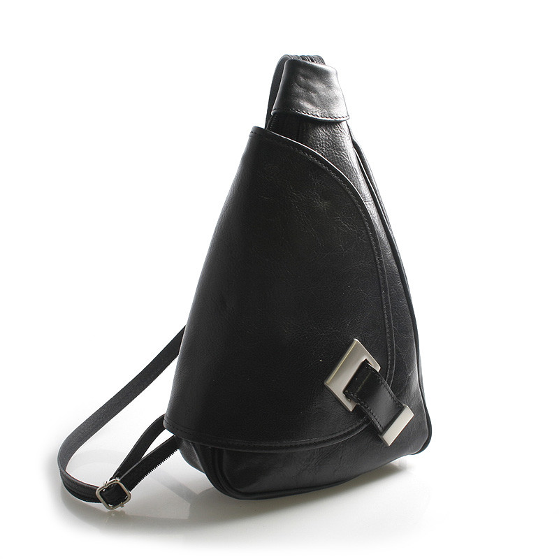 Čierny luxusný kožený mestský ruksak Italy. Elegantný dámsky ruksak s výraznou sponou na prednej strane a netypickým zatváraním vás určite očarí. Doba batohov je späť, preto by nemal chýbať v žiadnom dámskom šatníku. Vnútri je jedno vrecko bez zipsu a zozadu ďalšie na zips. Batoh je možné nosiť buď klasicky alebo spojením popruhov crossbody. Novinka a bestseller 2016.