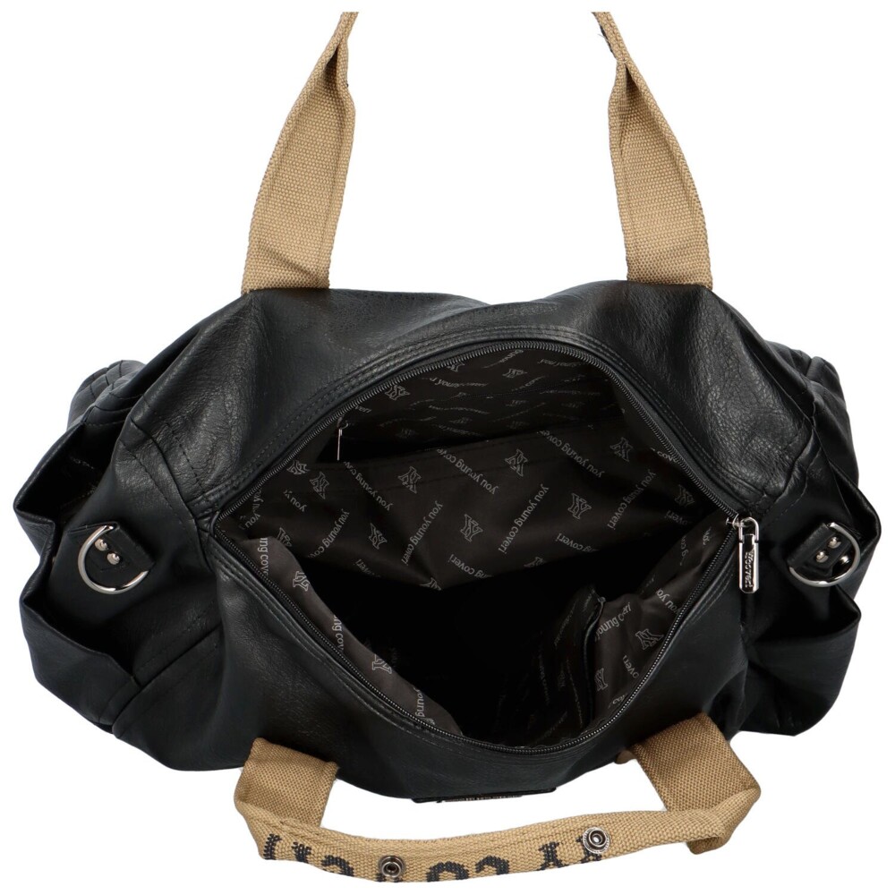 Nech sa vydáte na akúkoľvek cestu, dojem zanecháte s touto trendy cestovnou taškou. Navonok nájdete iba jedno vrecko na zadnej strane. Na prednej strane logo značky. V hlavnom úložnom priestore vás osloví štýlová podšívka a niekoľko praktických vrecúšok. Tašku môžete nosiť v ruke, alebo pripnúť látkový popruh, ktorý je zladený s celkom. Kovanie je v príjemnej tmavo striebornej farbe. Objednajte ešte dnes a vyskúšajte, vrátiť ju môžete až do 30 dní!