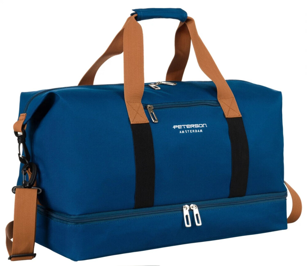 Univerzálna textilná taška značky Peterson spája moderný dizajn a praktickosť. Hlavné vrecko so zapínaním na zips ponúka dostatok priestoru pre oblečenie či iné veci a vo vnútri sa nachádzajú menšie vrecká v podšívke na prehľadné usporiadanie drobností. Spodná samostatná časť na zips je ideálna na uloženie topánok alebo oddelenie bielizne. Taška má pevné uši pre pohodlné nosenie v ruke a nastaviteľný dlhý popruh na pripnutie cez rameno. Strieborné a čierne kovanie dopĺňa celkový športovo-elegantný vzhľad. Ideálna voľba na cestovanie, do fitka aj na víkendové výlety. Objednajte ešte dnes a vyskúšajte, vrátiť ju môžete do 30 dní!