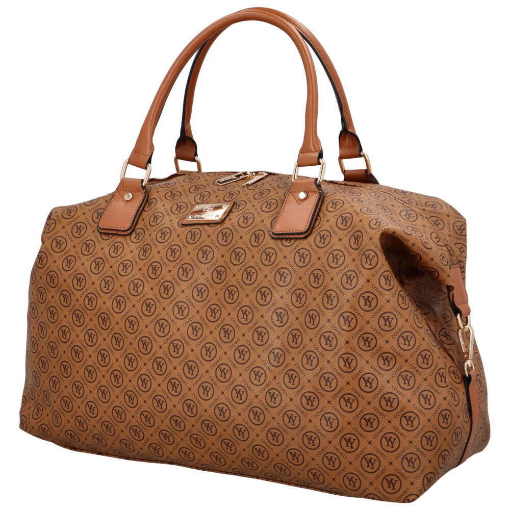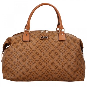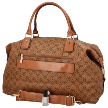 Táto dámska cestovná taška Vám ukáže, že cestovať sa dá štýlovo a pohodlne zároveň. Luxusný vzhľad vznikol vďaka elegantnej potlači a kontrastným prvkom, cestovná taška Coveri Lettero vám ale ponúkne oveľa viac. Objednajte ešte dnes a vyskúšajte, vrátiť ju môžete až za 30 dní! Horné rohy sú po bokoch zopnuté luxusnou karabínou vďaka tomu vznikol tento osobitý tvar tašky. Hlavný úložný priestor zaistíte zipsom s dvoma jazdcami, vo vnútri môžete využiť uzatvárateľné vrecko, otvorené priehradky našitých na podšívke. Zadná strana vám ponúkne posledné z menších vreciek a popruh na zaistenie tašky na madle kufra. Cestovnú tašku môžete nosiť v ruke, alebo pripnúť celokoženkový popruh a nabrať si ju na rameno.