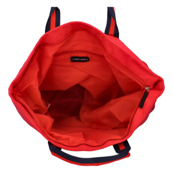Ponúkame Vám červenú cestovnú tašku od New Rebels, ktorú je možné nosiť v ruke aj cez plece. Látková taška je ideálna na šport, krátke cestovanie aj na pláž. Jej dizajn je jednoduchý a praktický. Uši sú tiež z textilu. Hlavné vrecko sa otvára zipsom. Vnútorná časť Vám ponúkne dve voľné vrecká na telefón a drobnosti a vrecko so zipsom. Celkovo je taška mäkká, a to vrátane dna, ktoré je rovné. Objednajte ešte dnes a vyskúšajte! Vrátiť ju môžete až za 30 dní!