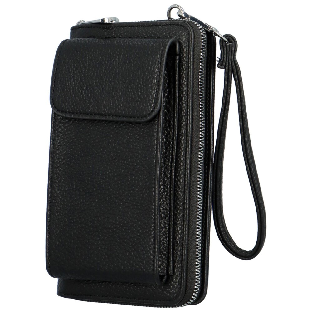 Štýlová dámska mini kabelka od Coveri zo syntetickej čiernej kože je veľmi praktická. V prednej časti nájdete vrecko na mobil. Uprostred je vrecko na zips na vaše kovové a papierové peniaze a v zadnej časti, ktorá sa uzatvára cvokom, je priestor pre vaše platobné karty. Táto malá kabelka má odnímateľný a nastaviteľný popruh, vďaka tomu sa dá nosiť ako cez plece, tak aj do kríža. Ku kabelke je aj prídavné uško na nosenie v ruke. Ideálna na prechádzky a výlety, keď potrebujete mať pri sebe len mobil a peniaze. Tak objednajte ešte dnes a vyskúšajte! Vrátiť ho môžete do 30tich dní.