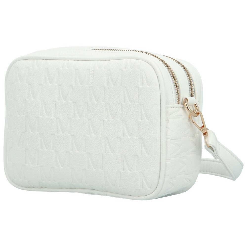 Dámska crossbody kabelka od MaxFly vyrobená z kvalitnej syntetickej kože bielej farby, precízne spracovaná do posledných detailov. Pôsobí moderne, má obdĺžnikový, kompaktný a pevný tvar. Koženkový materiál má jemne zrnitú štruktúru s vyrazeným vzorom zloženým z opakujúcich sa písmen "M". Má dve samostatné vrecká na zips v zlatej farbe. Vnútri sú aj menšie kapsičky na drobnosti. Zadná strana disponuje aj malým zipsovým vreckom. Popruh je odnímateľný a nastaviteľný, upevnený kovovými karabínami. Crossbody je vhodná na bežné nosenie aj na elegantnejšie príležitosti. Objednajte ešte dnes a vyskúšajte! Vrátiť ju môžete až do 30 dní!