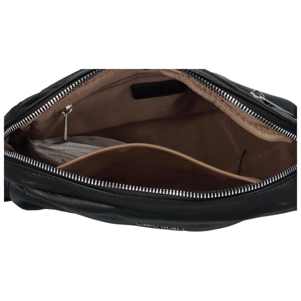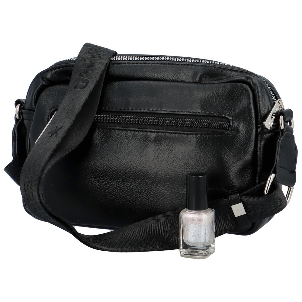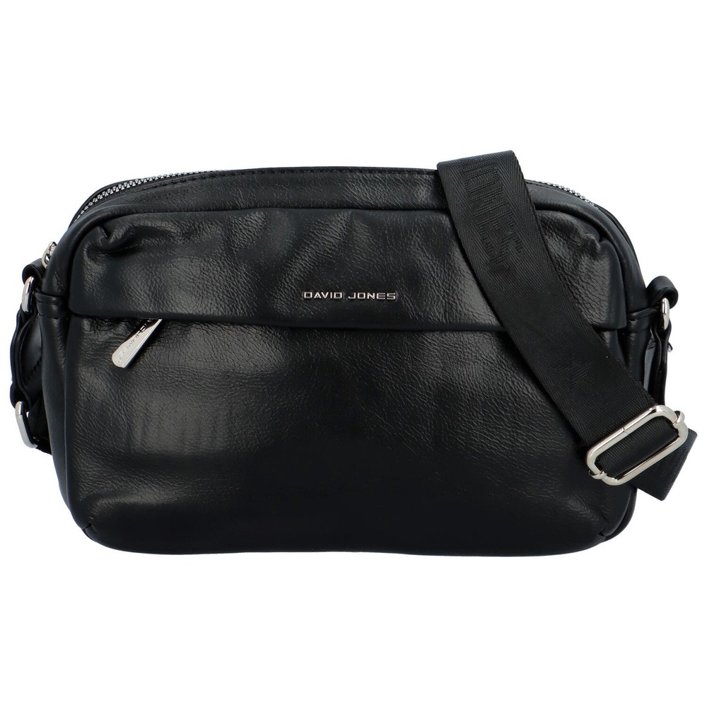 Čierna crossbody kabelka od značky David Jones, pre ženy aj dievčatá, do mesta aj na párty. Objednajte ešte dnes a vyskúšajte! Vrátiť ju môžete až za 30 dní! Kabelku je možné nosiť aj cez plece alebo crossbody, jej popruh je látkový a nesie logo značky. Hlavné vrecko sa otvára zipsom, vo vnútri je klasické voľné vrecko na telefón a malé vrecko na zips na drobnosti.
