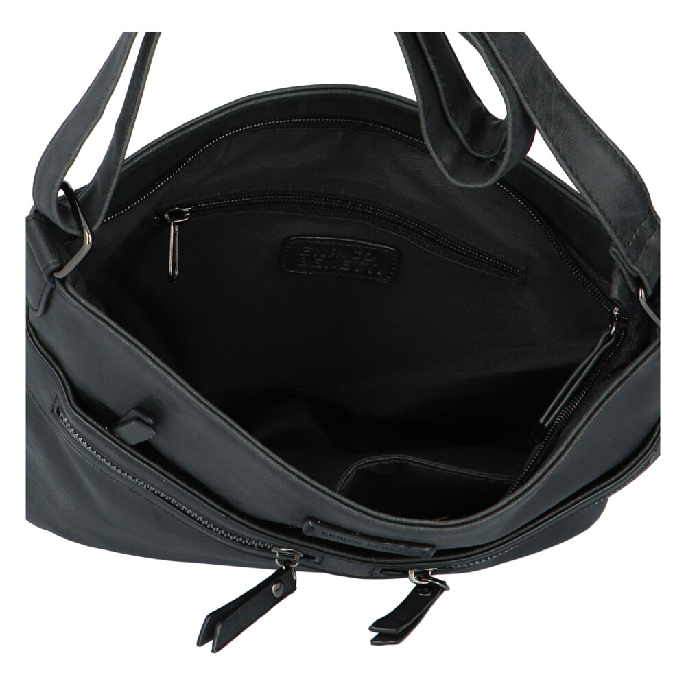 Značka Enrico Benetti vyrába originálne aj jednoduché modely pre ženy aj mužov. V tomto prípade sa jedná o klasickú, jednoduchú, pritom peknú, crossbody kabelku na každý deň. Vyrobená je z kvalitného odolného materiálu čiernej farby. Objednajte ešte dnes a vyskúšajte, vrátiť ju môžete až za 30 dní! Je mäkká, strednej veľkosti a na cesty do práce, pri nákupoch alebo v meste sa Vám bude skvele hodiť. Predná strana Vás zaujme dvoma kapsičkami so zipsami. Za nimi nájdete ďalšiu, tentoraz väčšiu kapsu so zipsom. Hlavné vrecko, tiež na zips, Vám ponúkne priestor pre osobné a ďalšie potreby a veci. Tu nájdete tri malé vrecká na drobnôstky a cennosti. Chýbať Vám nebude ani vrecko so zipsom na zadnej strane kabelky. Možno ju nosiť aj cez plece. Je hladká a veľmi príjemná na dotyk.