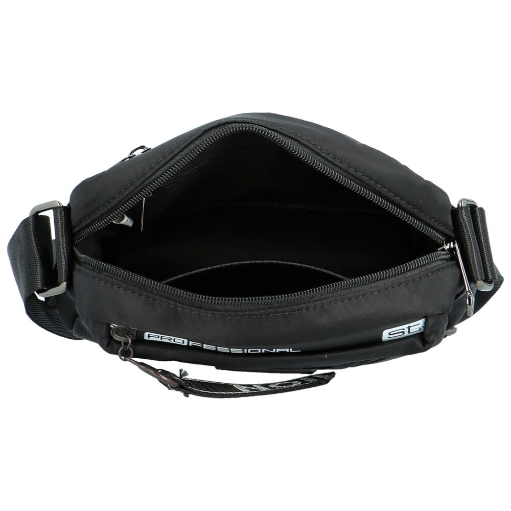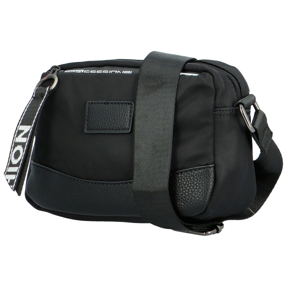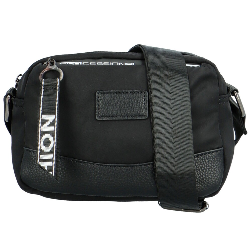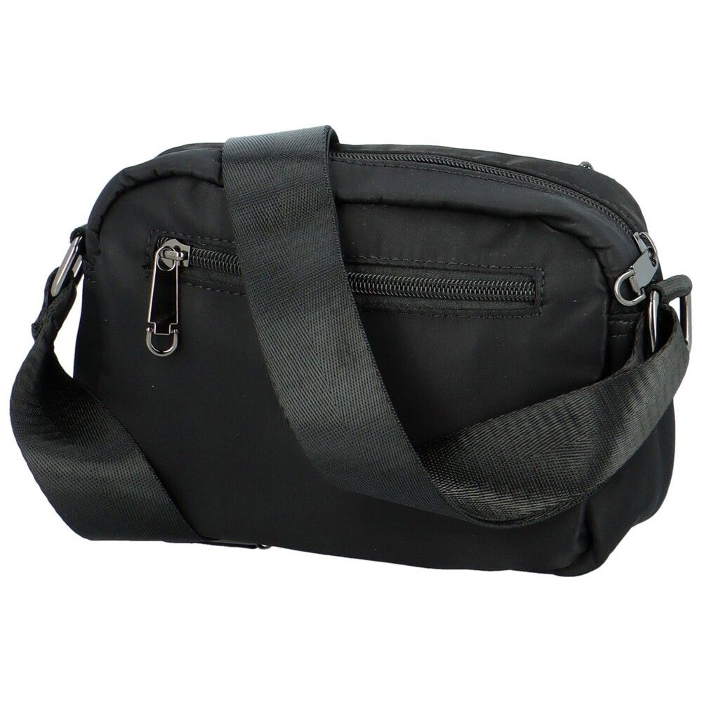 Dámska čierna crossbody kabelka Firenze v modernom a športovom štýle. Praktický strih a príjemná textília. Táto crossbody ľahko oživí váš športovejší outfit. Na prednej aj zadnej strane nájdete menšie vrecká na drobnosti, ktoré zaistíte zipsom. Hlavný úložný priestor je na zips, vo vnútri nájdete vrecko na zips a v podšívke otvorené priehradky. Široký látkový široký popruh z odolnej textílie, podčiarkuje uvoľnený dojem z tohto modelu. Kovanie je strieborné. Tak objednajte ešte dnes a vyskúšajte! Vrátiť ju môžete do 30 dní.