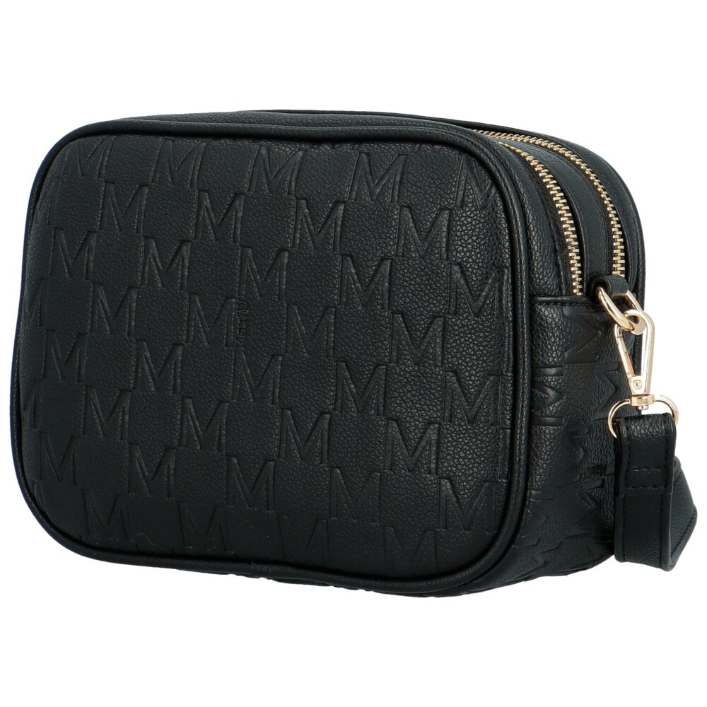 Dámska crossbody kabelka od MaxFly vyrobená z kvalitnej syntetickej kože čiernej farby, precízne spracovaná do posledných detailov. Pôsobí moderne, má obdĺžnikový, kompaktný a pevný tvar. Koženkový materiál má jemne zrnitú štruktúru s vyrazeným vzorom zloženým z opakujúcich sa písmen "M". Má dve samostatné vrecká na zips v zlatej farbe. Vnútri sú aj menšie kapsičky na drobnosti. Zadná strana disponuje aj malým zipsovým vreckom. Popruh je odnímateľný a nastaviteľný, upevnený kovovými karabínami. Crossbody je vhodná na bežné nosenie aj na elegantnejšie príležitosti. Objednajte ešte dnes a vyskúšajte! Vrátiť ju môžete až do 30 dní!