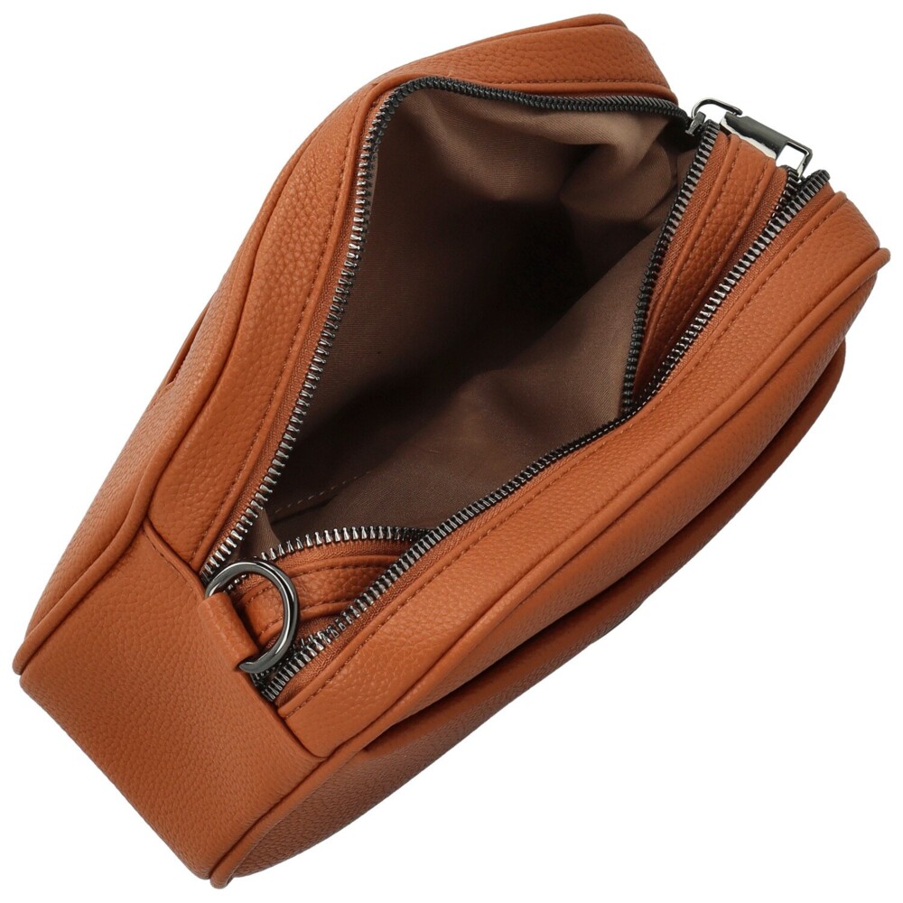 Táto štýlová dámska crossbody kabelka z kvalitnej koženky je ideálnym doplnkom pre každý deň. Praktické prevedenie ponúka dve samostatné vrecká na zips v tmavo striebornej farbe, ktoré sa postarajú o dokonalý prehľad a usporiadanie vecí. Vnútri nájdete kapsičky v podšívke na drobnosti. Zadnú stranu zdobí ešte jedno zipsové vrecko. Kabelka je doplnená nastaviteľným popruhom, vďaka ktorému ju môžete nosiť pohodlne cez rameno aj krížom cez telo. Decentné kovové logo na prednej strane pôsobí elegantne a dodáva celému modelu moderný vzhľad. Objednajte ešte dnes a vyskúšajte, vrátiť ju môžete až do 30 dní!
