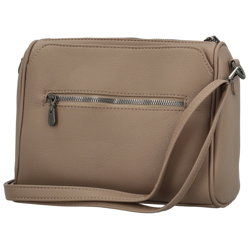 Štýlová crossbody kabelka z jemnej koženky s elegantným logom značky v tmavo striebornom odtieni na prednej strane. Hlavný priestor sa zapína na zips a ponúka prehľadne riešený interiér s kapsičkami v podšívke. Po oboch stranách hlavného vrecka sa nachádzajú dve praktické otvorené priehradky, ktoré nenarušujú čistý dizajn kabelky. Dlhý nastaviteľný popruh umožňuje pohodlné nosenie cez rameno aj krížom. Nadčasový doplnok, ktorý spája eleganciu a praktickosť v jednom. Objednajte ešte dnes a vyskúšajte, vrátiť ju môžete až do 30 dní!