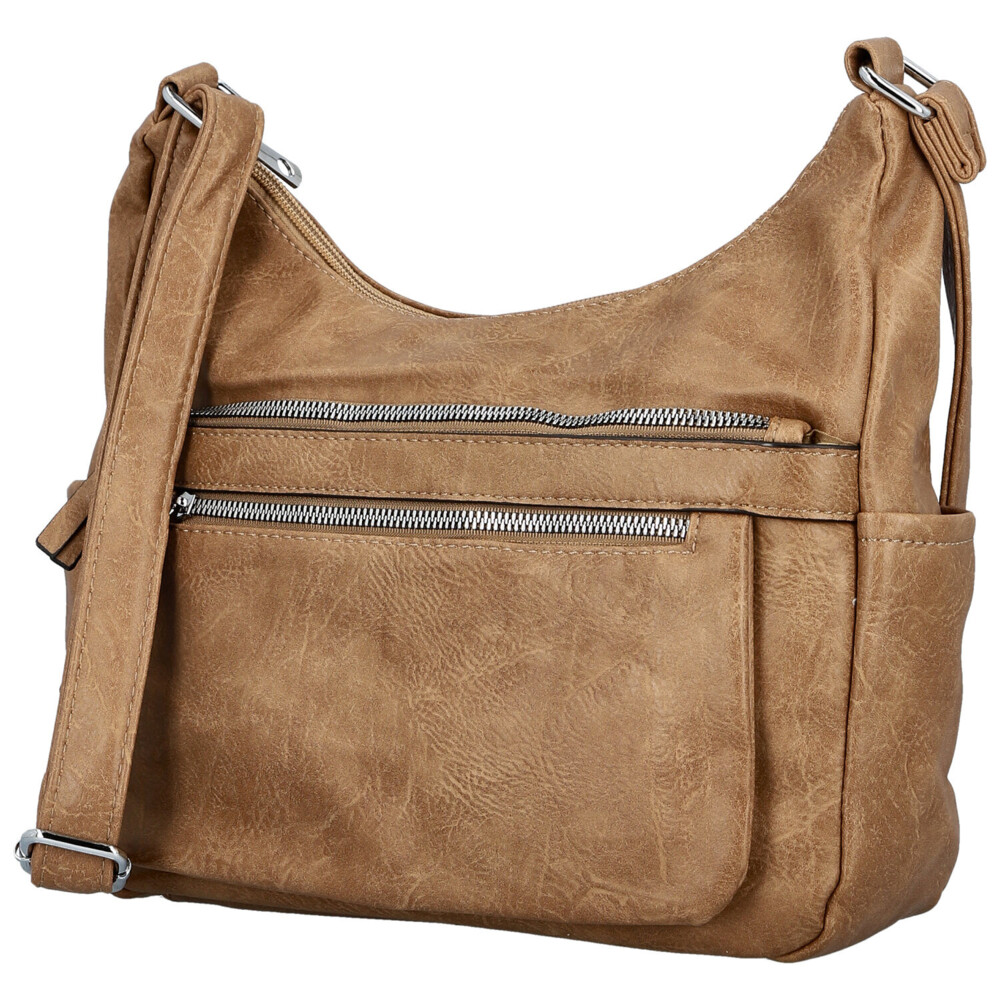 Módna koženková crossbody kabelka v nadčasovom dizajne. Prednú stranu dopĺňajú dve zipsové vrecká, ktoré nielen skvele vyzerajú, ale sú aj veľmi praktické na uloženie drobnosti. Hlavné vrecko na zips ponúka prehľadný vnútorný priestor - v podšívke nájdete menšie vrecká a stredové zipsové vrecko pre bezpečné uloženie cenností. Na zadnej strane sa nachádza samostatné zipsové vrecko. Kabelka má dlhý nastaviteľný popruh, vďaka ktorému sa pohodlne nosia cez rameno aj crossbody. Strieborné kovanie dodáva kabelke elegantný vzhľad. Ideálny doplnok na každý deň, kedy chcete mať všetko prehľadne po ruke. Objednajte ešte dnes a vyskúšajte, vrátiť ju môžete až do 30 dní!