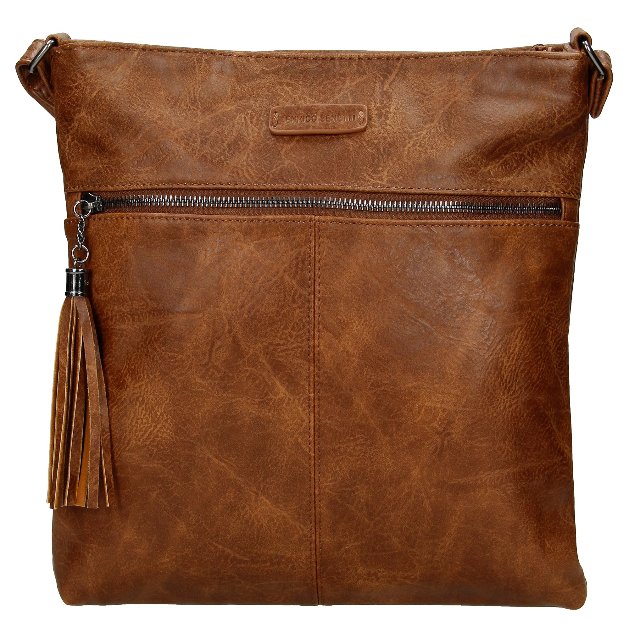 Dámska módna crossbody kabelka od značky Enrico Benetti je praktickým a ideálnym modelom do mesta a za zábavou. Koňaková kabelka Vám ponúkne dostatočný priestor na svoje osobné veci. Objednajte ešte dnes a vyskúšajte, vrátiť ju môžete až za 30 dní! Celkovo je kabelka mäkká. Zaujme Vás predné vrecko so zipsom a jazdcom v podobe strapca. Hlavné vrecko sa otvára klasickým zipsom a zadné vrecko je taktiež na zips. Vnútorný priestor ponúkne dve voľné vrecká na make-up a telefón a vrecko so zipsom na cennosti. Kabelku môžete nosiť aj cez rameno.