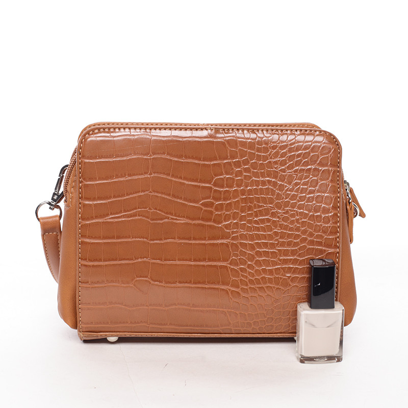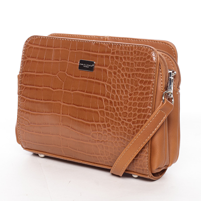 Dámska crossbody kabelka koňaková s hadím vzorom - David Jones Snake