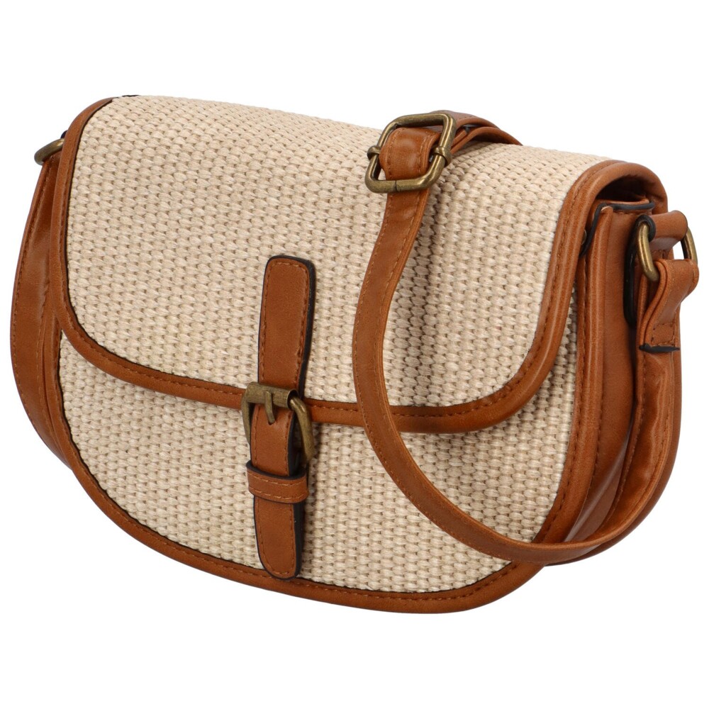 Dámska crossbody kabelka s praktickým koženkovým základom a letným dizajnom z papierovej slamy na povrchu. Kovanie v mosadznej farbe príjemne podčiarkuje štýl kabelky. Podarený doplnok od značky Firenze, ktorý vás prekvapí aj svojou praktickou stránkou. Objednajte ešte dnes a vyskúšajte, vrátiť ju môžete až za 30 dní! Klopu zaistíte magnetickým cvokom pripevneným na ozdobnej pracke. Hlavný úložný priestor ešte zaistíte zipsom, vo vnútri nájdete praktické vrecko všité do podšívky a otvorené priehradky na protiľahlej strane. Posledné vrecko je umiestnené na zadnej strane. Celokoženkový popruh ja našitý napevno, môžete regulovať jeho dĺžku.