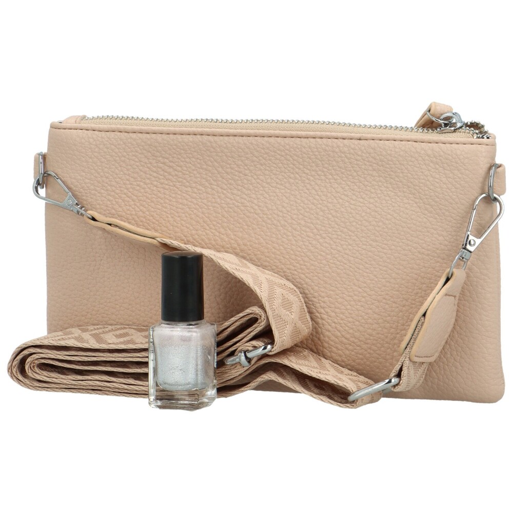 Malá púdrová crossbody kabelka od MaxFly v mäkkom prevedení - štýlový a praktický doplnok na každodenné nosenie. Jemná a na dotyk príjemná koženka sa ľahko udržuje. Kvôli svojej kompaktnej veľkosti pojme len to najdôležitejšie v dvoch zipsových vrecúškach a jednej menšej kapse na prednej strane zaistenej cvokom. Dominantným prvkom kabelky je široký športový popruh, ktorý farebne ladí s kabelkou a jeho dĺžka sa dá regulovať. Strieborné kovanie doplní tento kúsok. Tak objednajte ešte dnes a vyskúšajte! Vrátiť ju môžete do 30 dní.