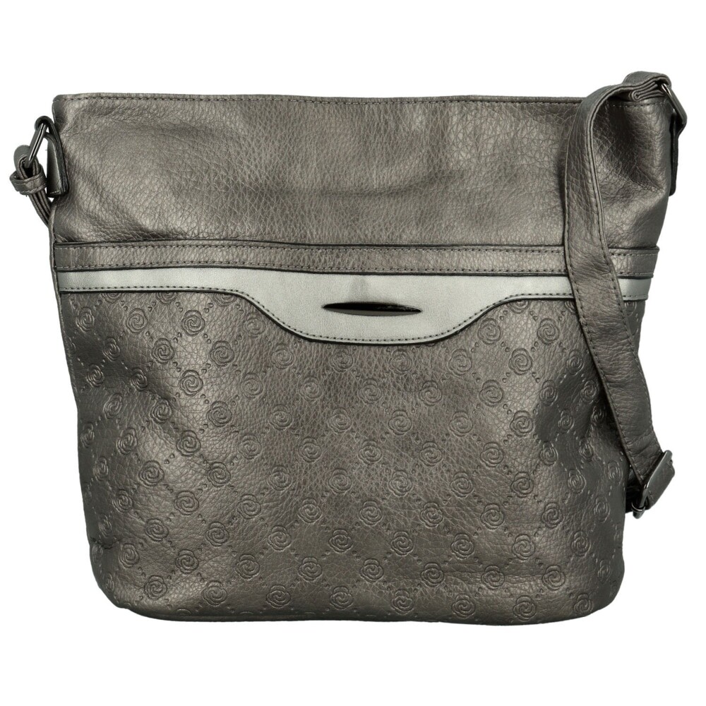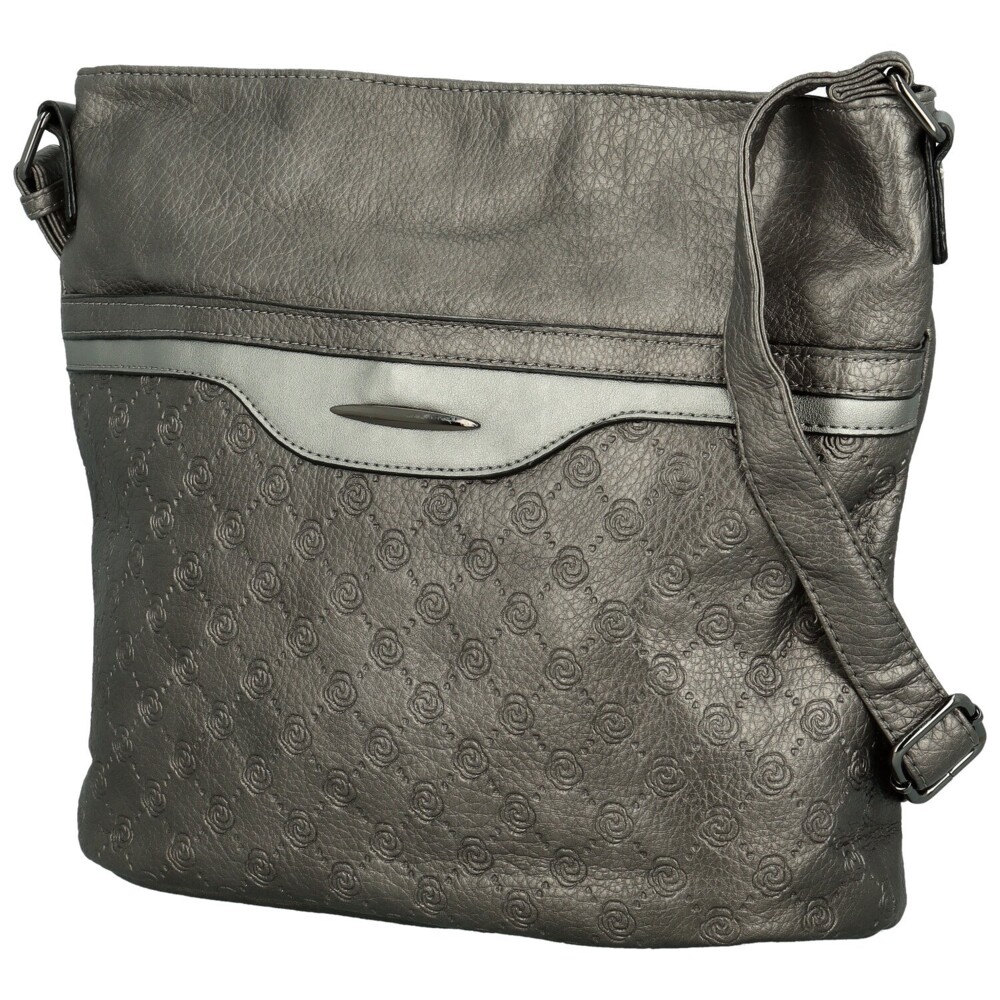 Štýlová dámska koženková crossbody kabelka v elegantnom dizajne. Predná strana zaujme originálnym dizajnom, kedy je spodná časť zdobená jemným reliéfnym vzorom a motívom ružičiek, zatiaľ čo horná časť je hladká s decentným kovovým detailom. Hlavné vrecko je uzatvárateľné na zips a vo vnútri sa nachádzajú vrecká v podšívke a stredové zipsové vrecko pre prehľadné usporiadanie vecí. Na zadnej strane je praktické zipsové vrecko. Kabelka má dlhý nastaviteľný popruh na pohodlné nosenie cez rameno či crossbody tmavo strieborné kovanie, ktoré elegantne dopĺňa celkový vzhľad. Objednajte ešte dnes a vyskúšajte, vrátiť ju môžete až za 30 dní!