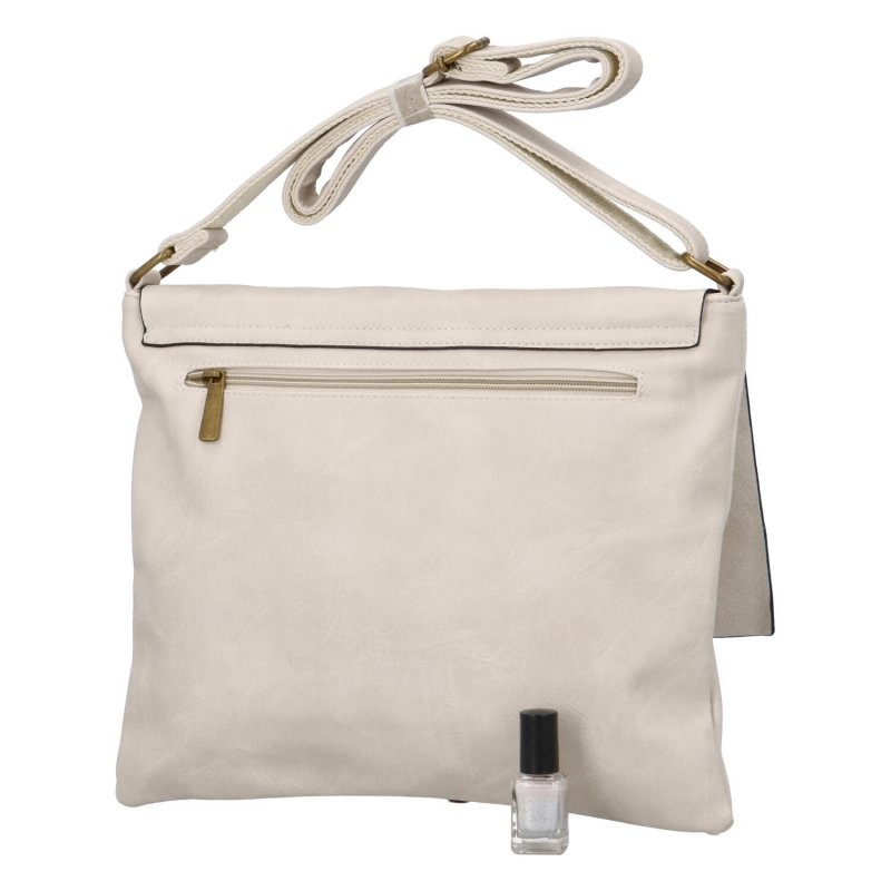 Väčšia mäkká crossbody kabelka, ktorú môžete nosiť aj cez rameno sa podobá poštovým taškám. Objednajte ešte dnes a vyskúšajte, vrátiť ju môžete až za 30 dní! Talianska značka Paolo Bags prináša lacnú, módne a štýlovú kabelku vo svetle béžovej farbe. Stane sa skvelým doplnkom v meste, na prechádzke i pri zábave s priateľmi. Hlavné vrecko na zips prekrýva chlopňa, ktorá sa uzatvára magnetickým nitom. Podšívka klopy je z umelého semišu. Pásik na klope kabelky, ku ktorému sa spája magnet, má podobu čierneho "koženého" pásku s mosadznou sponou. Nechýba tu vrecko so zipsom na zadnej strane. Popruh je podšitý látkou. A vnútorné priestory ponúknu tri menšie vrecká na telefón, drobnosti a cennosti.