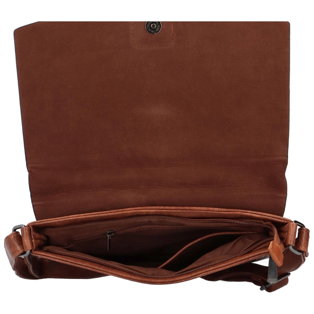 Mäkká tmavohnedá crossbody kabelka, ktorú môžete nosiť aj cez plece. Podobá sa poštovým taškám, ale je veľmi obľúbená pre svoj príjemný materiál. Stane sa skvelým doplnkom na každodenné nosenie. Hlavné vrecko je na zips, prekrýva ho chlopňa na magnetický cvok a okrasná pracka. Vnútri nájdeme menšie bočné vrecká v podšívke. Na zadnej strane nechýba vrecko na zips. Popruh je podšitý látkou a dá sa nastaviť na vami požadovanú dĺžku. Tak objednajte ešte dnes a vyskúšajte! Vrátiť ju môžete do 30 dní.