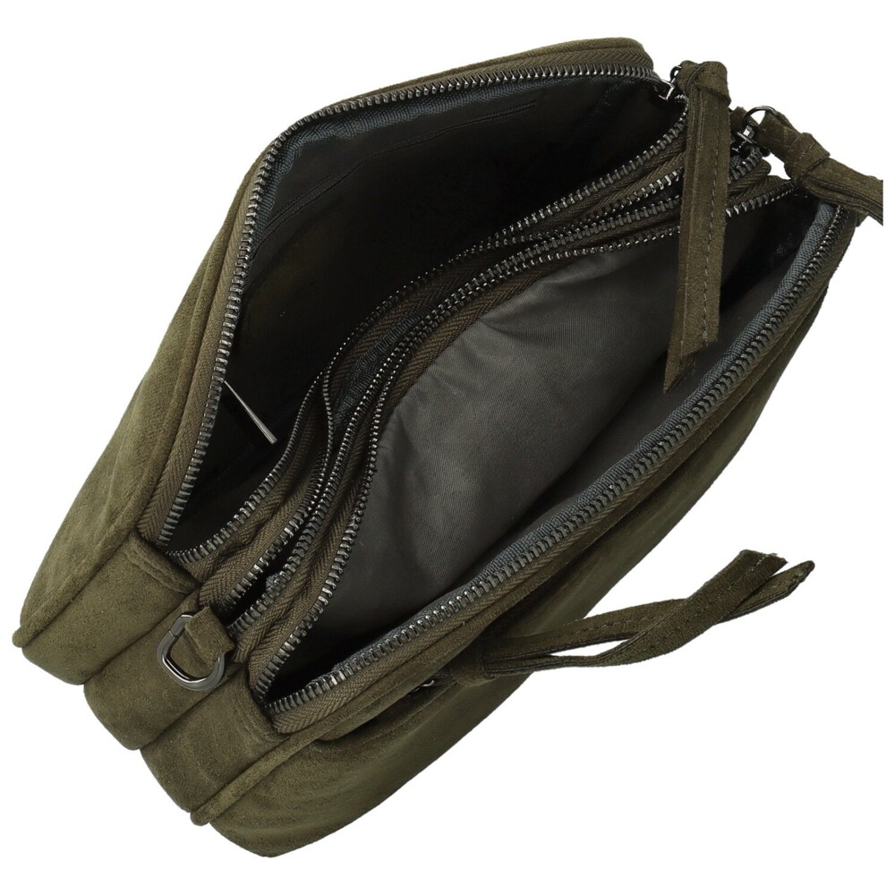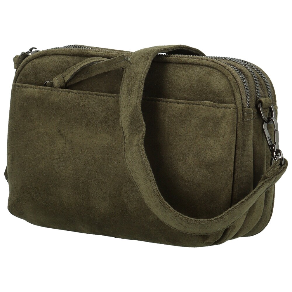 Štýlová malá crossbody kabelka z hebkej koženky so semišovým vzhľadom, ktorá sa stane vašim obľúbeným spoločníkom na každý deň. Je ľahká, skladná a napriek tomu prekvapivo priestranná, ponúka tri samostatné zipsové vrecká s vreckami v podšívke, kam uložíte všetko potrebné od mobilu po kľúče. Na prednej strane sa ukrýva nenápadné menšie vrecko na zips, ideálne na drobnosti, zadné vrecko potom poslúži pre rýchly prístup k veciam, ktoré chcete mať po ruke. Dlhý nastaviteľný popruh sa pohodlne nosí cez rameno aj krížom, tmavo strieborné kovanie dodáva kabelke moderný a elegantný nádych. Perfektná voľba na prechádzku mestom, do práce aj na víkendový výlet. Objednajte ešte dnes a vyskúšajte, vrátiť ju môžete až do 30 dní!