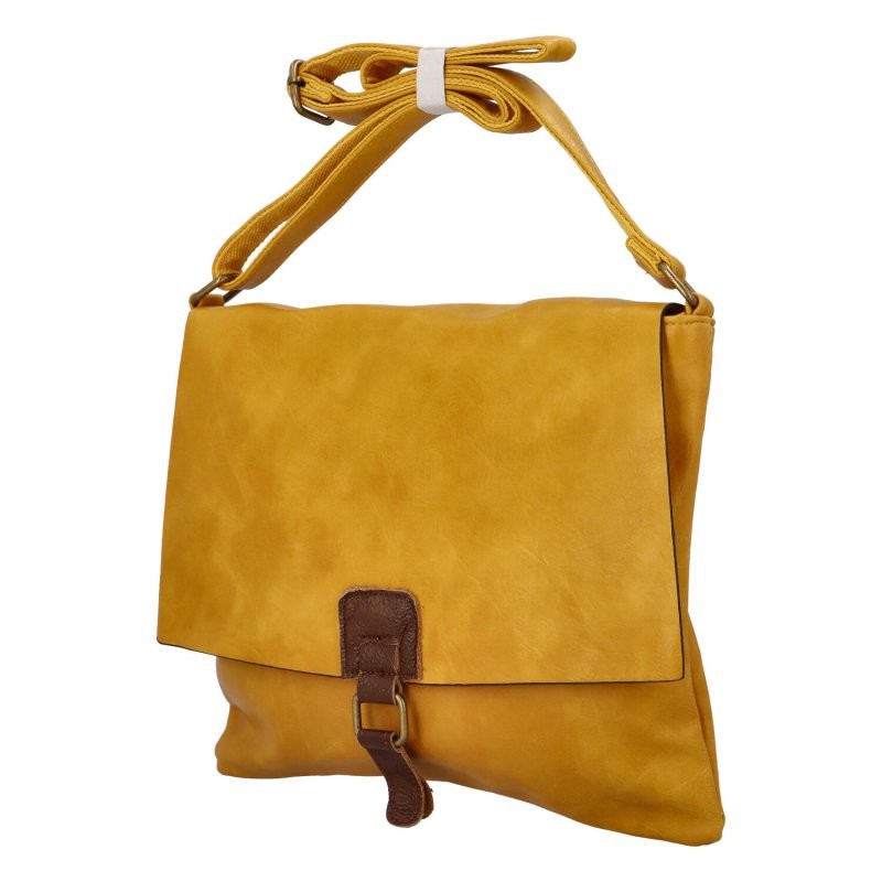 Väčšia mäkká crossbody kabelka, ktorú môžete nosiť aj cez rameno sa podobá poštovým taškám. Objednajte ešte dnes a vyskúšajte, vrátiť ju môžete až za 30 dní! Talianska značka Paolo Bags prináša lacnú, módne a štýlovú kabelku v žltej farbe. Stane sa skvelým doplnkom v meste, na prechádzke i pri zábave s priateľmi. Hlavné vrecko na zips prekrýva chlopňa, ktorá sa uzatvára magnetickým nitom. Podšívka klopy je z umelého semišu. Pásik na klope kabelky, ku ktorému sa spája magnet, má podobu čierneho "koženého" pásku s mosadznou sponou. Nechýba tu vrecko so zipsom na zadnej strane. Popruh je podšitý látkou. A vnútorné priestory ponúknu tri menšie vrecká na telefón, drobnosti a cennosti.