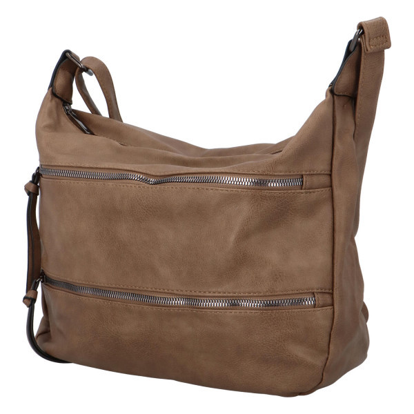 Obľúbené dámske kabelky od značky Paolo Bags. Tento taupe model Vám skvele poslúži v meste aj na výlete alebo na cestách do práce. Módnu kabelku s dlhým popruhom môžete nosiť crossbody alebo cez plece. Objednajte ešte dnes a vyskúšajte! Vrátiť ju môžete až za 30 dní! Ide o klasickú zaoblenú kabelku s hlavným vreckom na zips a ďalšími vreckami na prednej aj zadnej strane.