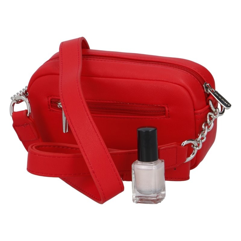 David Jones a jeho kolekcia do mesta alebo na párty má svieži, originálny vzhľad. Je to moderná crossbody kabelka v červenej farbe. Nosiť ju môžete aj cez plece. Ide o malý model s logom "DJ" na prednej strane. Uložíte si sem mobilný telefón, kľúče, peňaženku či doklady. Objednejte ešte dnes a vyskúšajte, vrátiť ju môžete až za 30 dní! Otvára sa zipsom, vo vnútri je voľná kapsička a vrecko so zipsom. Ďalšiu kapsu so zipsom nájdete aj na zadnej strane kabelôčky. Popruh tvorí z malej časti kovová retiazka. Celkovo je kabelka mäkšia, ale dobre drží svoj obdĺžnikový tvar.