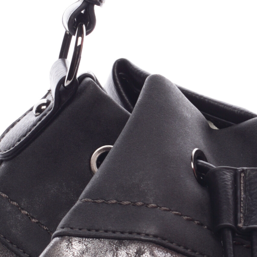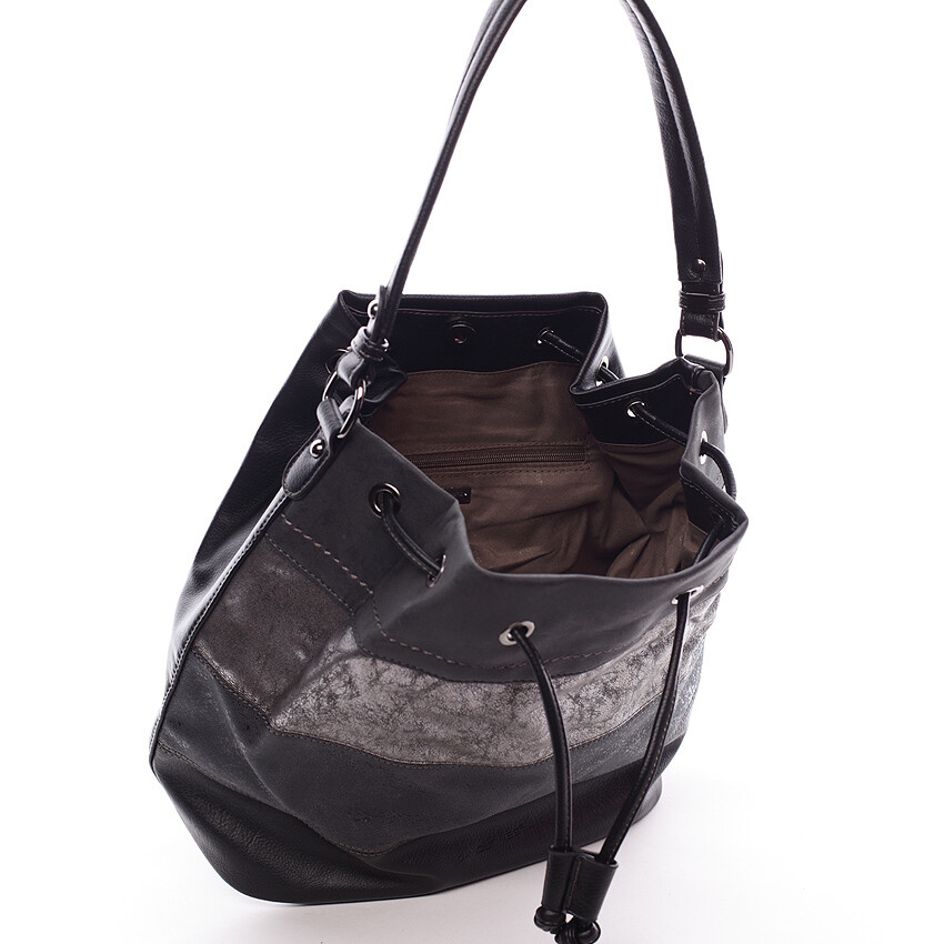 Originálna čierna dámska kabelka-vak David Jones so šnurovaním a magnetickým cvokom. Novinka 2015. Kabelka na Vás zapôsobí hneď na prvý pohľad vďaka vintage vzhľadu. Na zadnej strane je vrecko na zips, vnútri potom nájdete ďalšie praktické vrecká na drobnosti. Podšívka je jednofarebná. Súčasťou kabelky je nastaviteľný odnímateľný popruh.