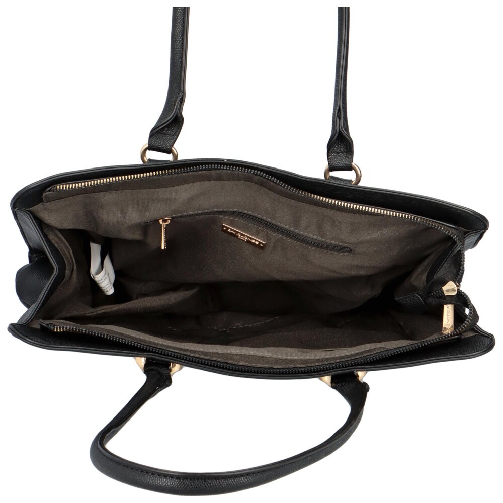 Luxusná dámska koženková kabelka, ktorá vám krásne doplní váš outfit. Čierna kabelka Barbara od značky David Jones je pevná a priestranná, po otvorení hlavného vrecka na zips ponúka dostatok priestoru pre vaše veci do práce aj na prechádzky. Nechýbajú vnútorné vrecká so zipsom na drobnejšie veci. Ďalší menší úložný priestor môžete využiť na vonkajšej zadnej strane kabelky. Prednú stranu zdobí drobné logo značky David Jones v zlatej farbe. Kabelka má dlhšie pevné uši, a tak vám bude na pleci krásne sedieť. Objednajte ešte dnes a vyskúšajte! Vrátiť ju môžete do 30 dní!