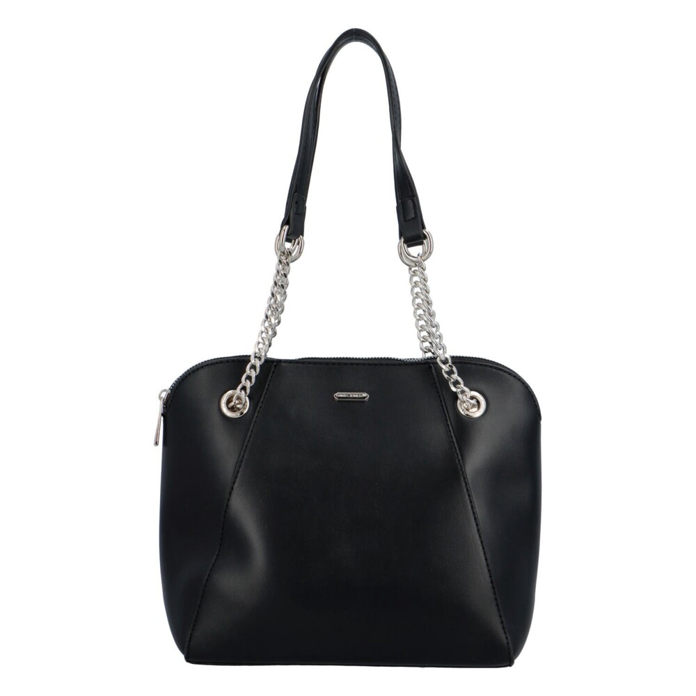 Moderná dámska kabelka značky David Jones skvele doplní Váš nákupný či mestský outfit. Elegantnú čiernu farbu a originálny, no pritom jemný, design si obľúbite. Stredne veľká kabelka sa nosí cez plece, dlhé uchá sú sčasti z kovových krúžkov. Hlavné vrecko sa otvára klasickým zipsom, vo vnútri Vám nebudú chýbať kapsičky na telefón a drobnosti. Bonusom je voľné vrecko na zadnej strane kabelky. Objednajte ešte dnes a vyskúšajte! Vrátiť ju môžete až za 30 dní!
