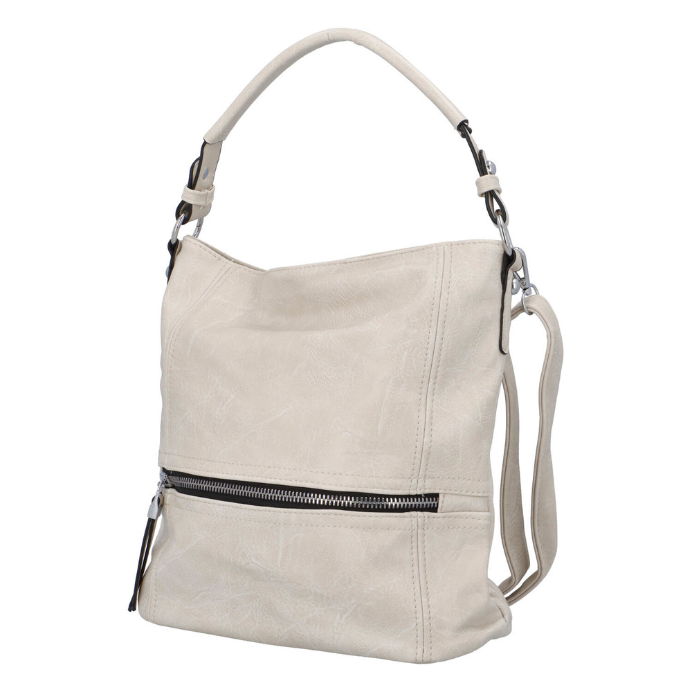 Jednoduchá krémovo biela kabelka cez plece značky ROMINA & CO BAGS. Objednajte ešte dnes a vyskúšajte! Vrátiť ju môžete až za 30 dní! Praktický, elegantný kúsok, ktorý môžete nosiť za ucho alebo aj s popruhom. Kabelka je väčších rozmerov, uložiť si tu môžete rôzne veci, vrátane dokumentov, ktoré potrebujete do práce. Ideálny model na nákupy do mesta, ale poslúži aj pri posedení s priateľmi. Táto kabelka zaujme ľahko prešívanou prednou stranou, na ktorej nájdete vodorovné vrecko s robustnejším zipsom, ideálne pre menšie veci, ktoré treba mať po ruke. Hlavné vrecko sa otvára zipsom, vnútorný priestor sa delí látkovou prepážkou vo forme vrecka na zips. Nájdete tu tiež voľné vrecká na telefón a drobnosti a vrecko so zipsom na cennosti. Chýbať Vám nebude ani vrecko so zipsom na zadnej strane kabelky.