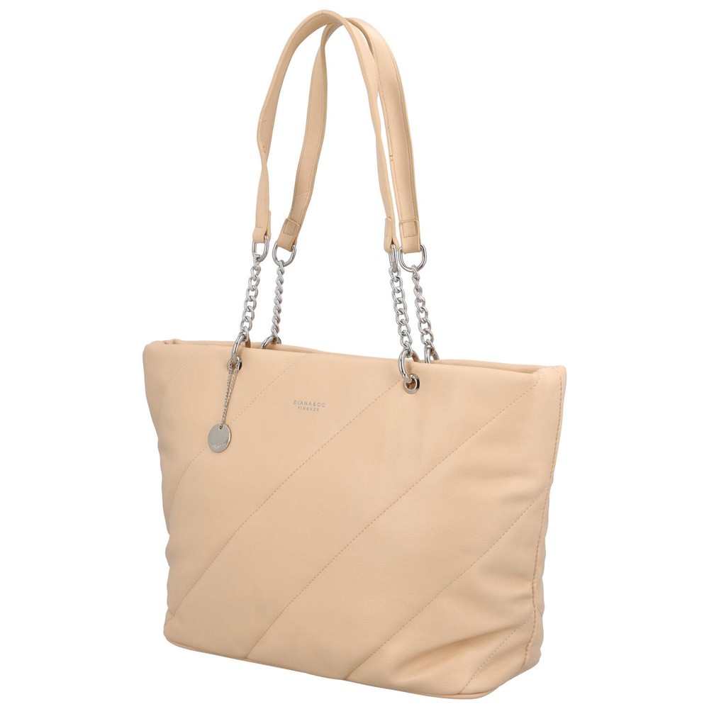 Originálna mestská novinka od obľúbenej značky DIANA & CO. Veľká, púdrová kabelka pre ženy. Objednajte ešte dnes a vyskúšajte! Vrátiť ju môžete až za 30 dní! Rozhodne vás zaujme šikmo prešívaná predná strana kabelky. Dlhé uši kabelky sú z časti z kovových krúžkov. Bonusom je malý prívesok s logom značky. Kabelka je mäkká. Hlavné vrecko je na zips. Vnútorný priestor je rozdelený látkovou prepážkou v podobe vrecka so zipsom. Samozrejmosťou sú voľné vrecká na telefón aj make-up a tiež vrecko so zipsom na ďalšie drobnosti.