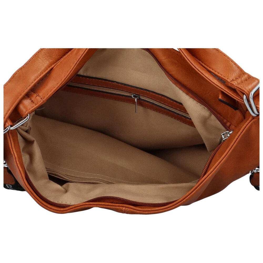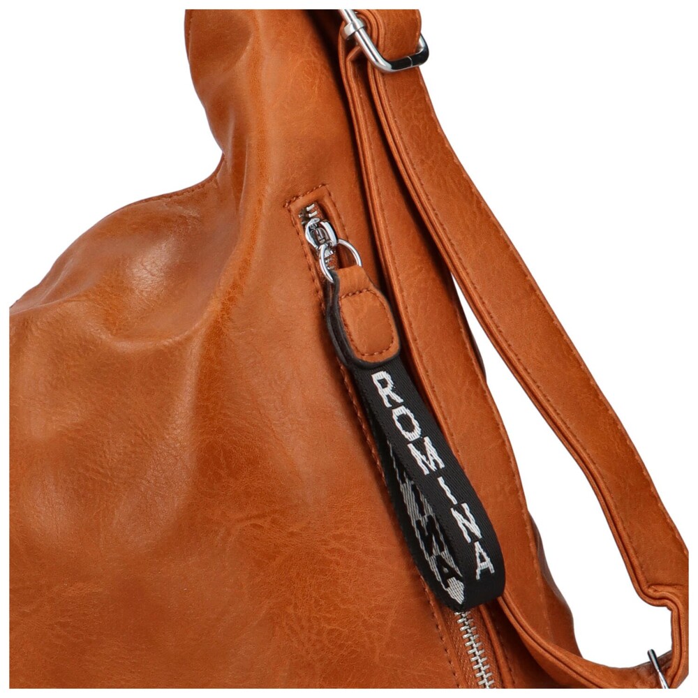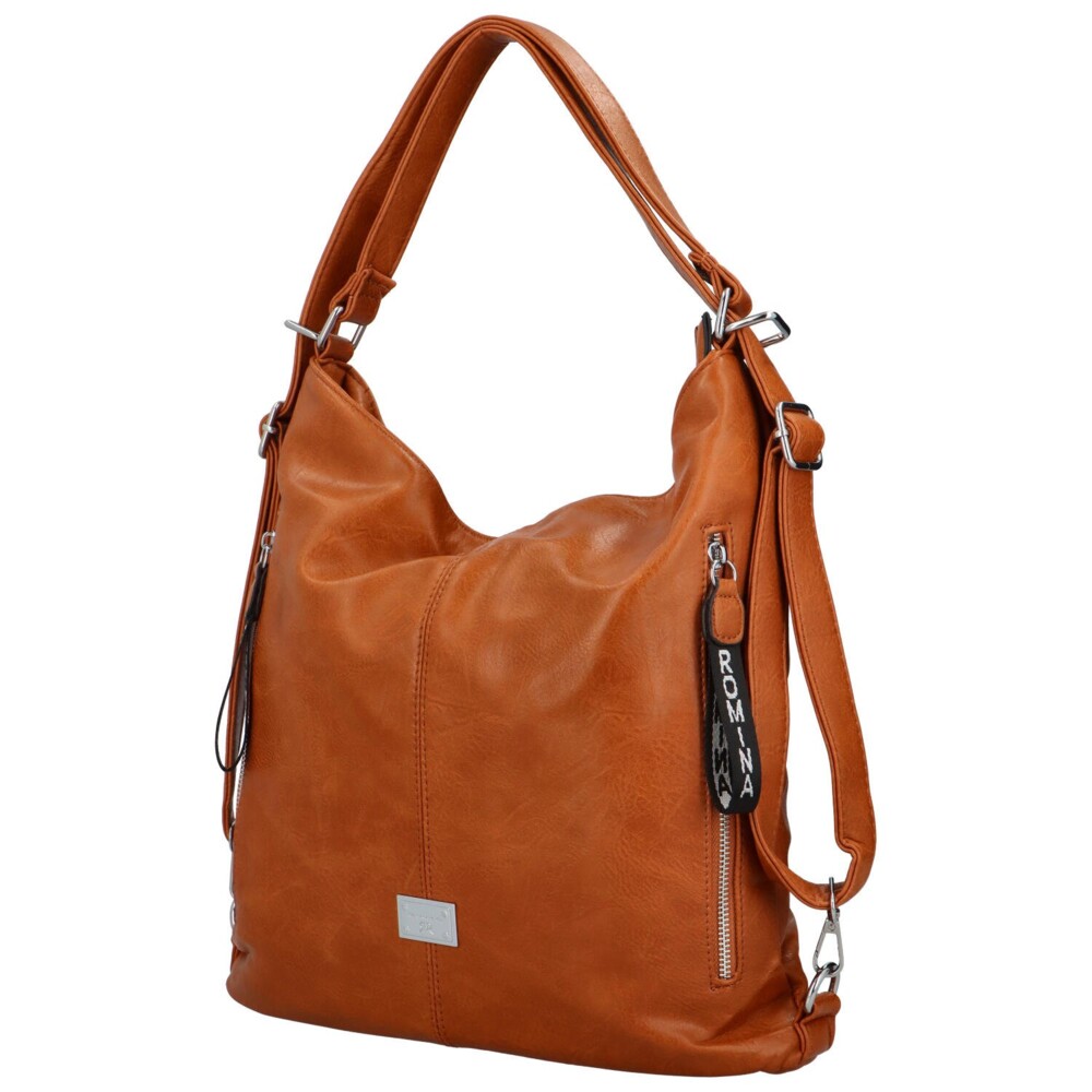 Väčšia svetlohnedá módna kabelka cez plece značky ROMINA & CO BAGS. Kabelku je možné nosiť aj crossbody alebo ako batoh, na to slúžia čiastočne odnímateľné popruhy. Hlavné vrecko otvoríte klasicky zipsom. Ľahko prešívaná kabelka má dve sympatické zvislé vrecká so zipsami na prednej strane. Chýbať vám nebude vrecko so zipsom na zadnej strane. Celkovo je taška mäkká s pevnejším dnom. Hlavnú časť úložného priestoru pretína látková prepážka v podobe vrecka so zipsom. Sú tu aj postranné vrecká na telefón, okuliare a ďalšie drobnosti. Objednajte ešte dnes a vyskúšajte! Vrátiť ju môžete až za 30 dní!