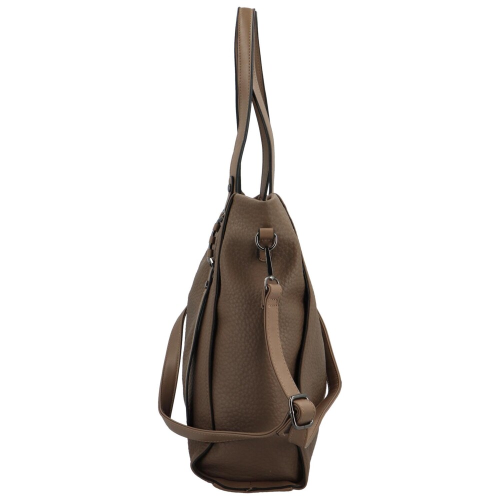 Stredne veľká tmavobéžová kabelka do mesta, na nákupy alebo do práce. Coveri. Je ušitá z príjemnej, mäkkej koženky a vždy vám krásne padne k telu. V prednej časti ju zdobia tmavé strieborné spony na ušiach a tiež logo značky. Uši sú dostatočne dlhé na nosenie cez rameno a ku kabelke je aj prídavný popruh nastaviteľnej dĺžky, ktorý je možné využiť na nosenie do kríža. Hlavné vrecko je na zips a vo vnútri nájdete stredové zipsové vrecko a v podšívke ďalšie vrecká pre drobnosti. Kabelka disponuje aj zadným malým zipsovým vreckom. Objednajte ešte dnes a vyskúšajte! Vrátiť ju môžete až do 30 dní!