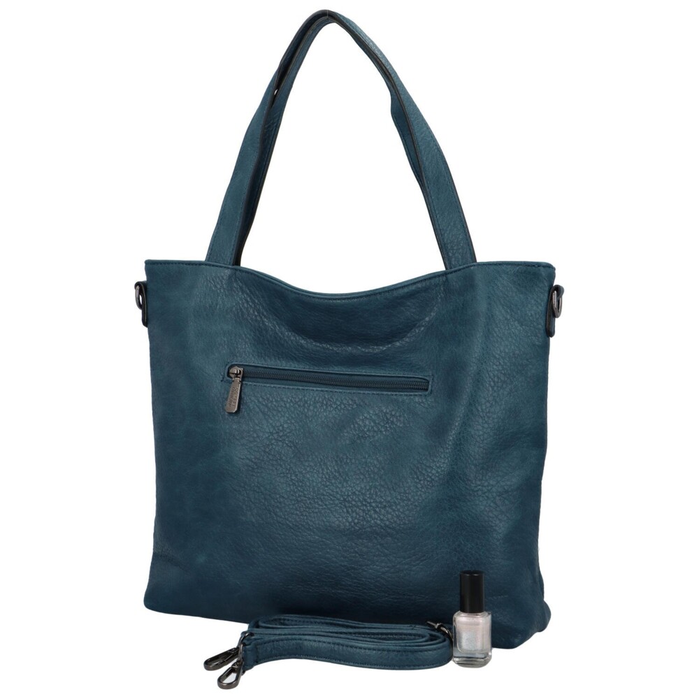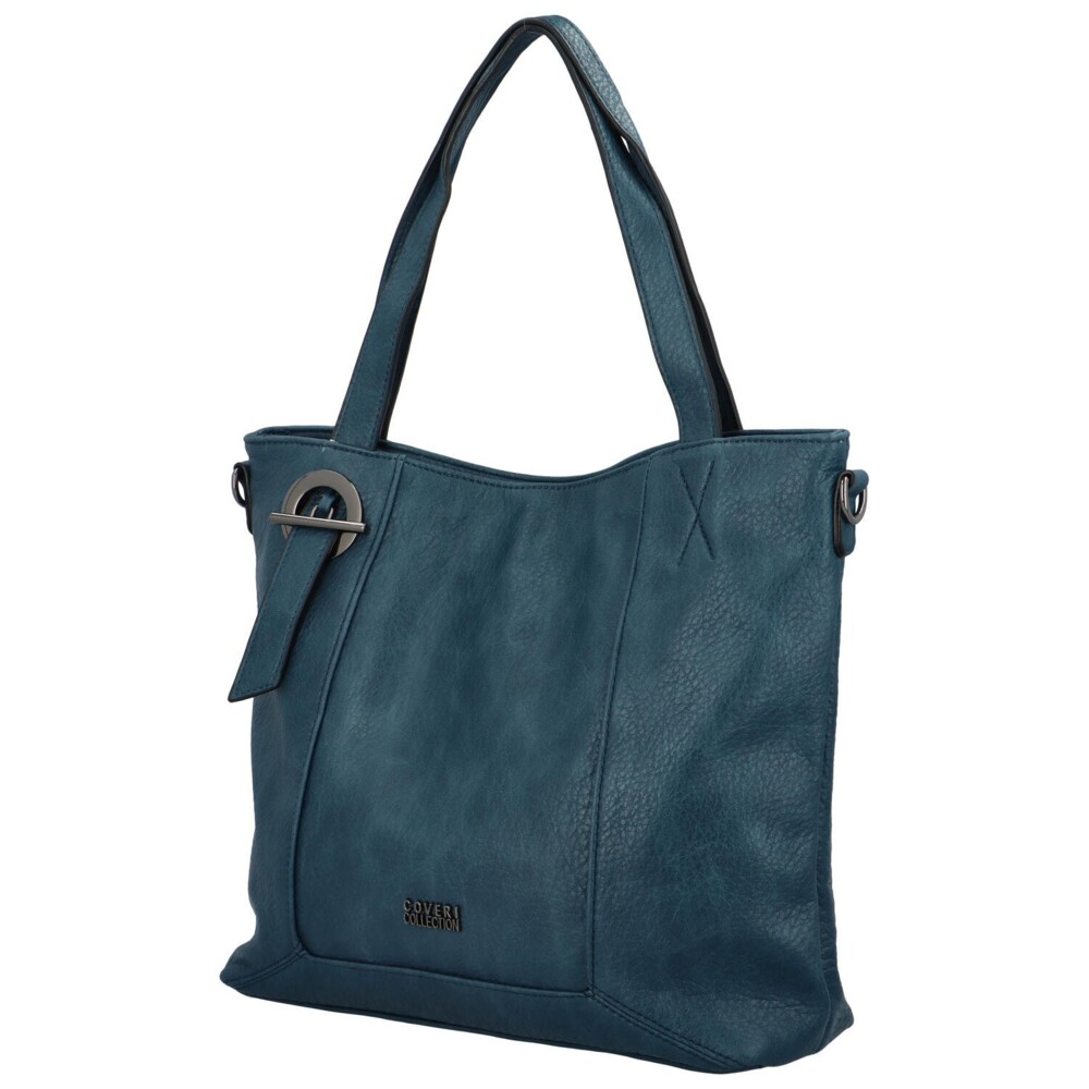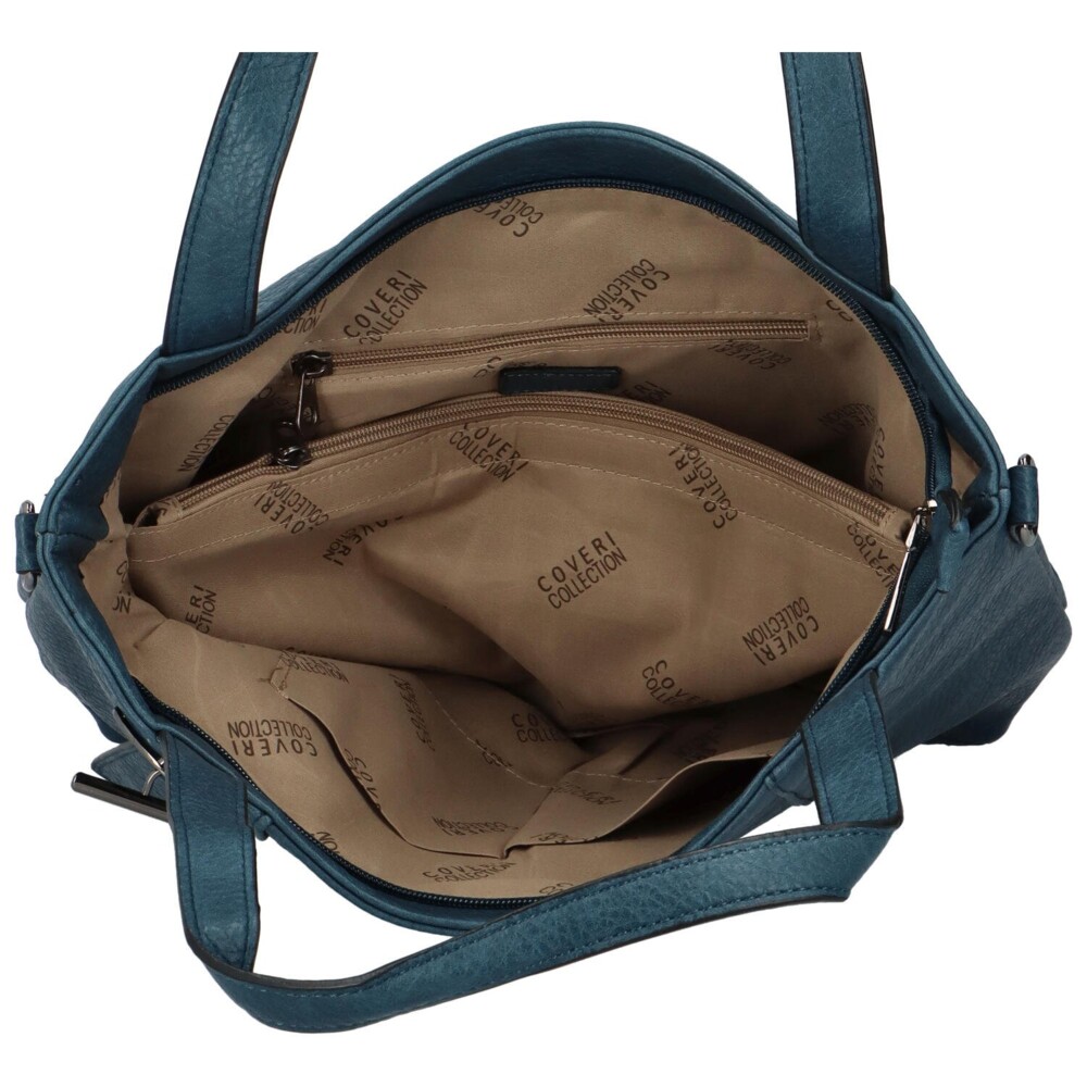 Elegantná tyrkysová kabelka strednej veľkosti, od značky Coveri, s vkusným vykrojením a ozdobným kovaním, do ktorej sa krásne zmestia vaše osobné veci, ale aj pracovné dokumenty či malý nákup. Kabelka má hlavné vrecko na zips, vaše veci tak budete mať stále v bezpečí. Vnútri nájdete rozdeľovaciu priehradku na zips v podšívke a tiež menšie bočné vrecká. K dispozícii je aj menšie vrecko uzatvárateľné zipsom na zadnej strane kabelky. K dispozícii sú dlhšie široké uši pre pohodlné po celý deň, ale aj prídavný, nastaviteľný popruh, na nosenie do kríža. Prednú stranu zdobí okrasná tmavostrieborná spona a logo značky Coveri. Tak objednajte ešte dnes a vyskúšajte! Vrátiť ju môžete do 30 dní.