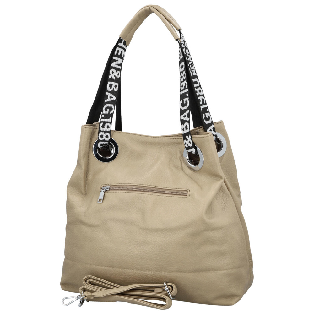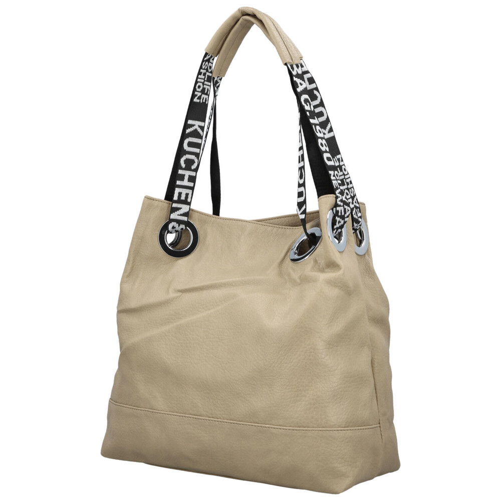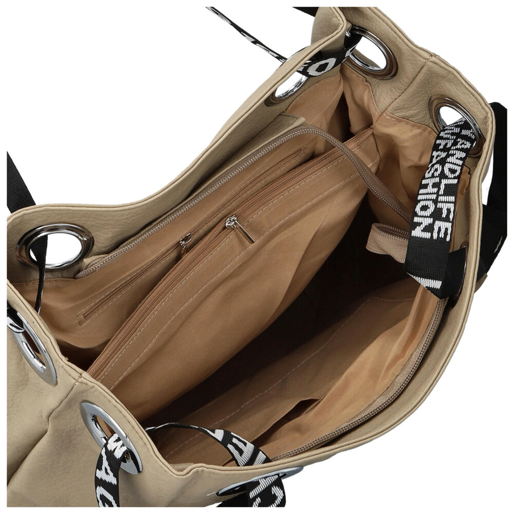 Stredne veľká dámska shopper kabelka v modernom dizajne s hlavným vreckom na zips. Objednajte ešte dnes a vyskúšajte, vrátiť ju môžete až za 30 dní! Kabelka nie je len doplnok. Je to váš každodenný spoločník, ktorý vás sprevádza na cestách, v práci aj pri stretnutiach s priateľmi. Vyberte si model, ktorý vystihne vašu osobnosť – jemný, výrazný, elegantný a zároveň ležérny. Béžová kabelka cez rameno Firenze. Ponúkne dostatočný priestor na všetky osobné veci i ďalšie potreby ako sú knihy, diár, notebook, šál, občerstvenie. Dlhé uši sú z polyesteru a prostredné časti sú polstrované syntetickou kožou, bude sa vám tak nosiť pohodlne v ruke aj cez rameno. Vnútorná časť je rozdelená priehradkou so zipsom. Samozrejmosťou sú malé vrecká na kozmetiku, telefón a ďalšie drobnosti.