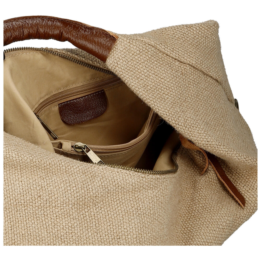 Ležérna elegancia, ktorá vás bude baviť každý deň. Táto textilná kabelka zaujme svojim mäkkým, uvoľneným tvarom a príjemným materiálom, ktorý pôsobí ľahko a prirodzene. Dominantou je hnedé koženkové ucho, ktoré krásne kontrastuje s farebným textilom a dodáva kabelke štýlový, nadčasový vzhľad. Mosadzné kovanie potom celý dizajn jemne podčiarkuje a pridáva mu nádych vintage elegancie. Hlavné vrecko na zips ukrýva priestranný interiér s vreckami v podšívke. Pre väčšiu variabilitu nechýba ani dlhý koženkový popruh na pripnutie. Ideálny spoločník na každý deň. Objednajte ešte dnes a vyskúšajte, vrátiť ju môžete až za 30 dní!