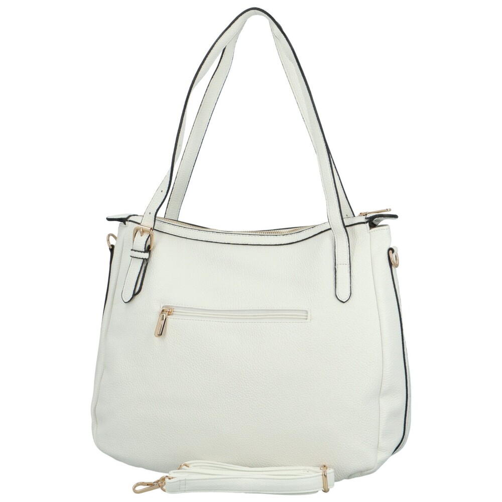 Dámska kabelka cez rameno na každodenné nosenie z kvalitnej koženky má jednoduchý, ale moderný dizajn a dostatok priestoru pre osobné veci. Nastaviteľné uši umožňujú prispôsobiť dĺžku popruhov podľa potreby, čo zaisťuje pohodlné nosenie cez rameno alebo v ruke. Čierne lemovanie zvýrazňuje obrysy bielej kabelky a dodáva jej sofistikovaný vzhľad. Hlavné vrecko je na zips a vo vnútri kabelka disponuje aj menšími vreckami v podšívke. Prednú stranu zdobí zlaté logo Coveri a zadná strana ponúka zipsové vrecko. Ku kabelke sa dá pripnúť aj dlhý nastaviteľný popruh na nosenie do kríža. Syntetický materiál je kvalitný a ľahko sa udržuje. Objednajte ešte dnes a vyskúšajte! Vrátiť ju môžete až do 30 dní!