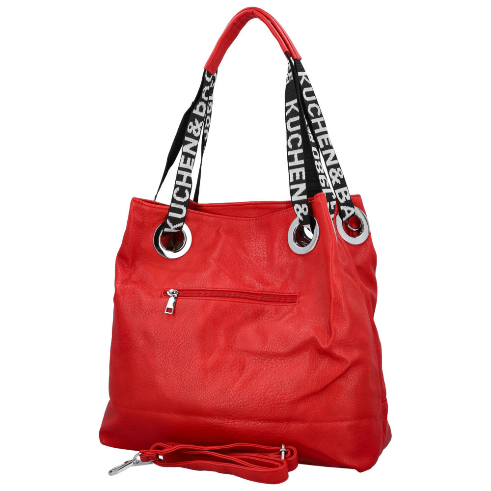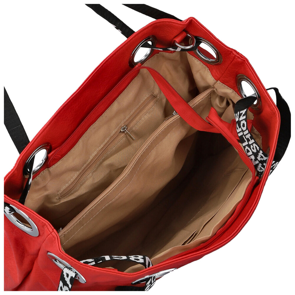Stredne veľká dámska shopper kabelka v modernom dizajne s hlavným vreckom na zips. Objednajte ešte dnes a vyskúšajte, vrátiť ju môžete až za 30 dní! Kabelka nie je len doplnok. Je to váš každodenný spoločník, ktorý vás sprevádza na cestách, v práci aj pri stretnutiach s priateľmi. Vyberte si model, ktorý vystihne vašu osobnosť – jemný, výrazný, elegantný a zároveň ležérny. Červená kabelka cez rameno Firenze. Ponúkne dostatočný priestor na všetky osobné veci i ďalšie potreby ako sú knihy, diár, notebook, šál, občerstvenie. Dlhé uši sú z polyesteru a prostredné časti sú polstrované syntetickou kožou, bude sa vám tak nosiť pohodlne v ruke aj cez rameno. Vnútorná časť je rozdelená priehradkou so zipsom. Samozrejmosťou sú malé vrecká na kozmetiku, telefón a ďalšie drobnosti.