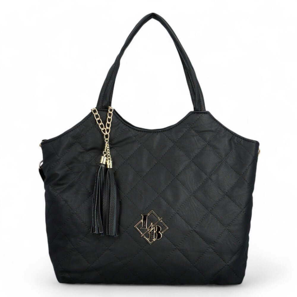 Perfektný čierny koženkový kúsok k vašim outfitom, od známej talianskej značky Laura Biaggi. Kabelka je ľahká, praktická a hlavne trendy, užite si nádych talianskeho šarmu. Tašku zdobí jemné prešívanie, logo značky na prednej strane v zlatej farbe a módny prívesok na zlatej retiazke. Pevné uši padnú do ruky aj na rameno, po pridaní dlhého, nastaviteľného textilného popruhu, môžete kabelku nosiť aj do kríža. Tento model disponuje veľkým vreckom na zips a vo vnútri nechýbajú malé bočné vrecká v podšívke. Zadná strana má malé zipsové vrecko pre rýchly prístup. Objednajte ešte dnes a vyskúšajte! Vrátiť ju môžete až do 30 dní!