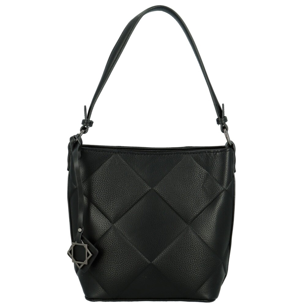 Táto dámska kabelka z mäkkej, ale pevnej koženky zaujme svojim elegantným tvarom a moderným spracovaním. Prednú aj zadnú časť zdobí decentný geometrický motív v podobe jemne vytlačených štvorcov, ktorý kabelke dodáva štruktúru a osobitosť. Pri jednom z uší je umiestnený ozdobný prívesok v dizajnovom tvare, ktorý celý model príjemne oživuje. Do hlavného vrecka uzatvárateľného na zips sa ľahko zmestí všetko potrebné. Jej vnútorný priestor je premyslene členený, nájdete tu vrecká v podšívke aj praktické stredové zipsové vrecko. Kabelka má pohodlné ucho na nosenie na ramene a zároveň odnímateľný, nastaviteľný popruh, ktorý umožňuje nosiť ju aj ako crossbody. Strieborné kovanie podčiarkuje moderný vzhľad a dodáva kabelke jemný nádych luxusu, vďaka čomu sa stáva skvelým doplnkom pre všedné dni aj elegantné príležitosti. Objednajte ešte dnes a vyskúšajte, vrátiť ju môžete až do 30 dní!
