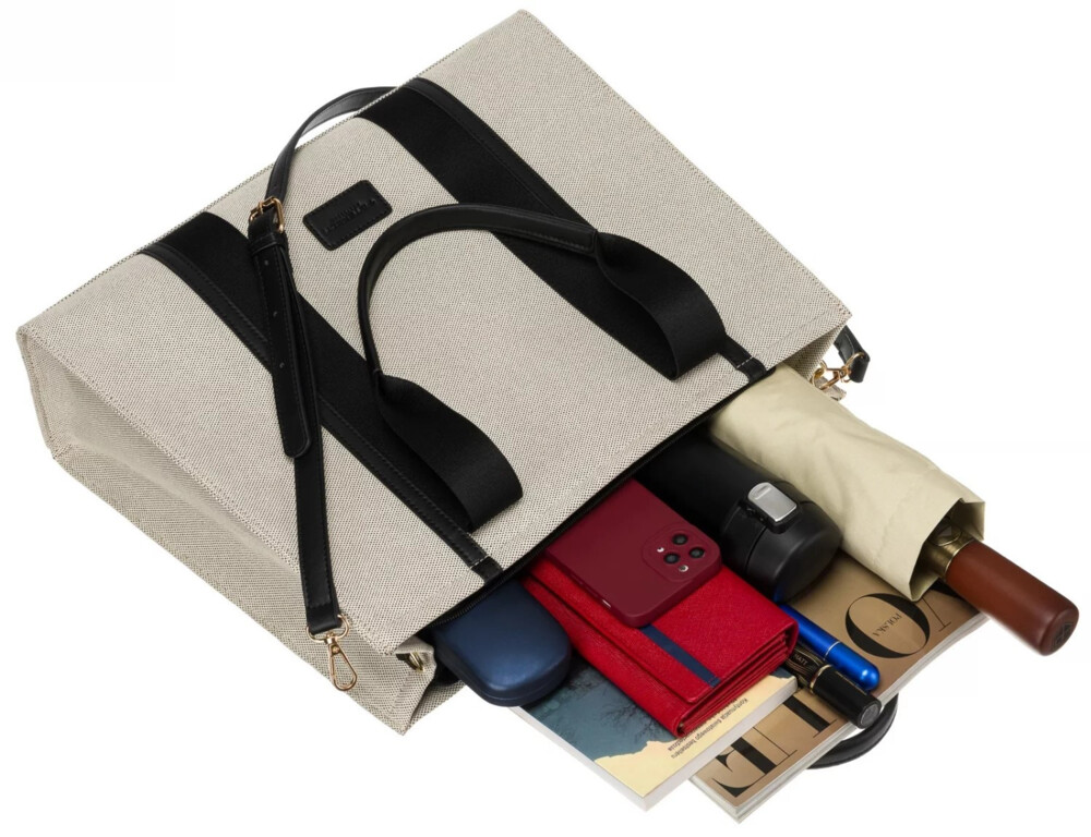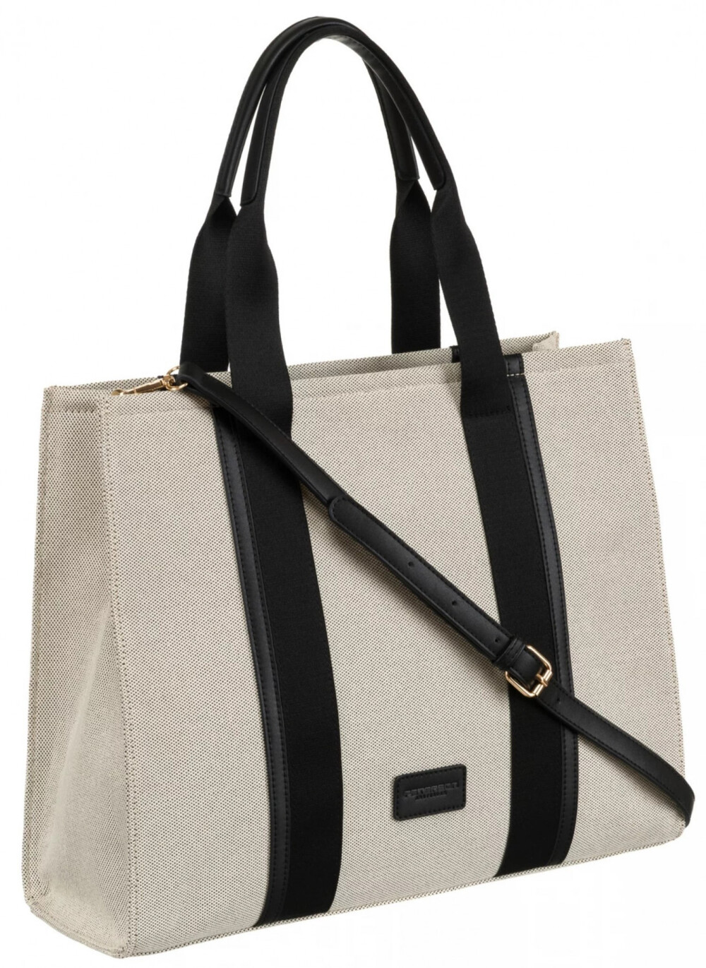Textilná kabelka pôsobí elegantne a zároveň ležérne. Hlavné vrecko je uzatvárateľné na zips a vo vnútri sa nachádzajú praktické vrecká v podšívke pre prehľadné usporiadanie drobností. Prednú časť zdobia dva zvislé prúžky z koženky, ktoré ladia s detailmi v hornej časti uší. Kabelka má tiež odnímateľný a dĺžkovo nastaviteľný popruh z koženky, vďaka ktorému ju možno nosiť aj cez rameno. Celkový vzhľad dopĺňa decentné logo značky a zlaté kovanie, ktoré dodáva kabelke jemný nádych luxusu. Objednajte ešte dnes a vyskúšajte, vrátiť ju môžete do 30 dní!